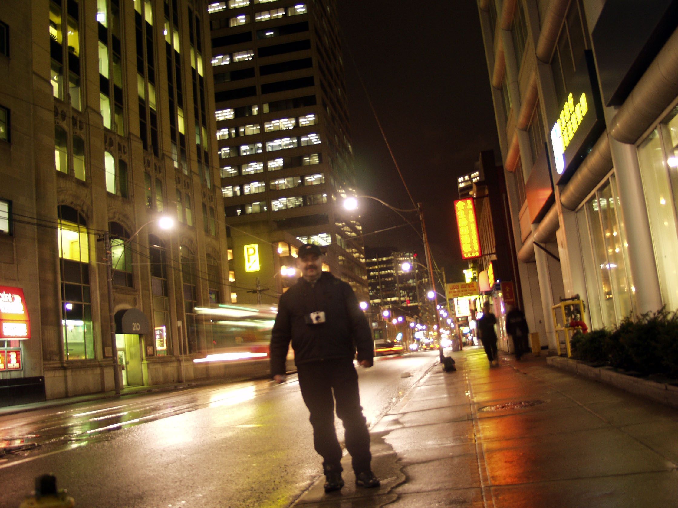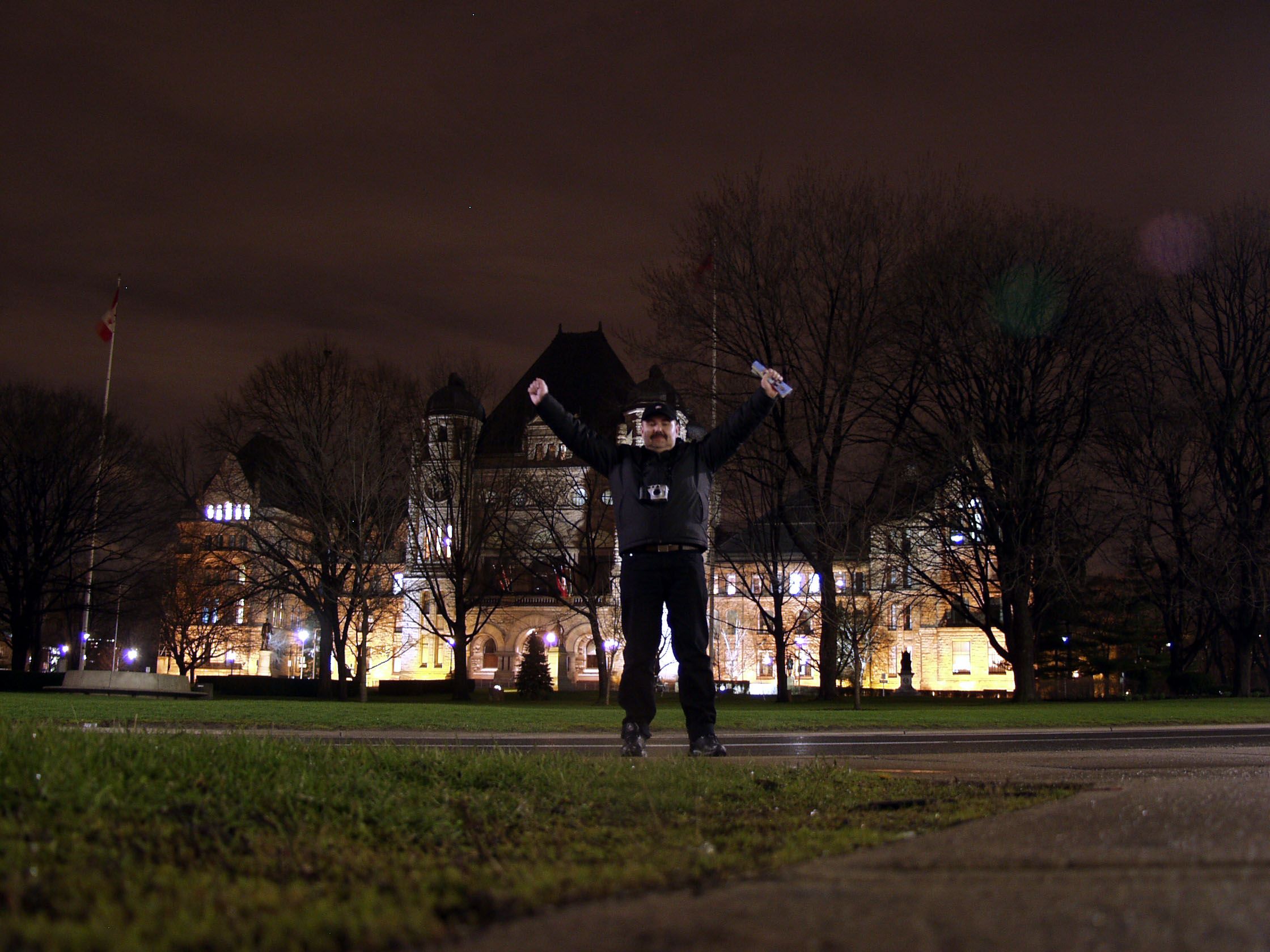 Продолжаем ночное путешествие. В блоке фотографий ниже: слева вверху — на одной из главных улиц центра города, где просто масса медицинских учреждений :). Справа — это был трамвай, ехавший довольно быстро, поэтому от него остались одни отблески. Слева внизу — перед зданием местного парламента провинции Онтарио. Справа — напоследок мы зашли в круглосуточно работающее кафе Tim Hortons (потом еще многократно будем встречать такие же заведения, эта сеть кафе, открытая знаменитым канадским хоккеистом Тимом Хортоном, развита столь же сильно, как и Макдональдс, однако если последний там котируется в основном среди детей, то первый весьма популярен у всех).