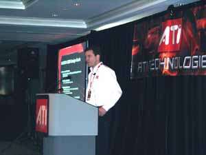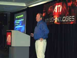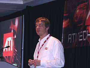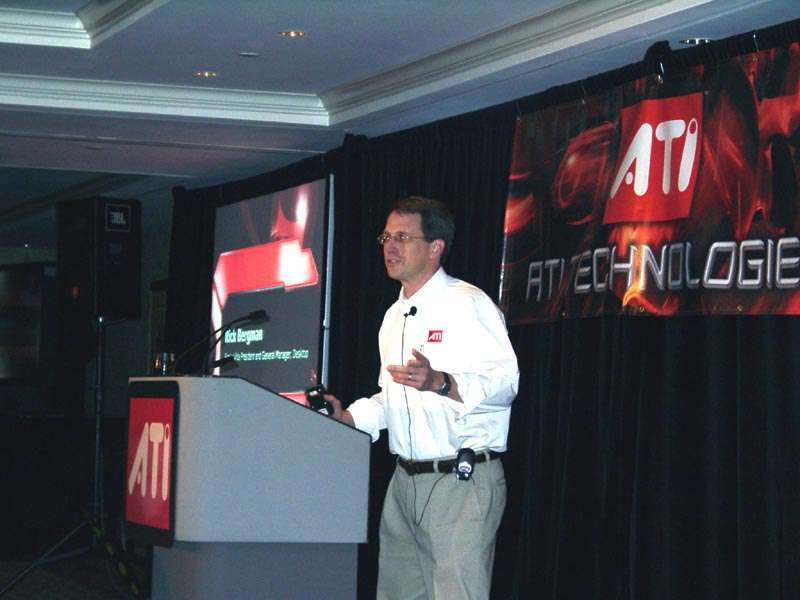 | Затем с докладом выступил старший вице-президент ATI по маркетингу (desktop) Рик Бергман (Rick Bergman) | ![]() (Фотография в разрешении 800×600) |