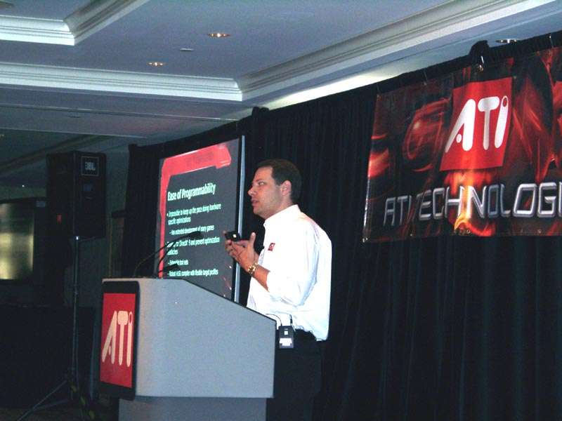 | Первым взял слово Крис Эвенден (Chris Evenden) — руководитель маркетингового сектора ATI, он собственно, и вел все мероприятие. | ![]() (Фотография в разрешении 800×600) |