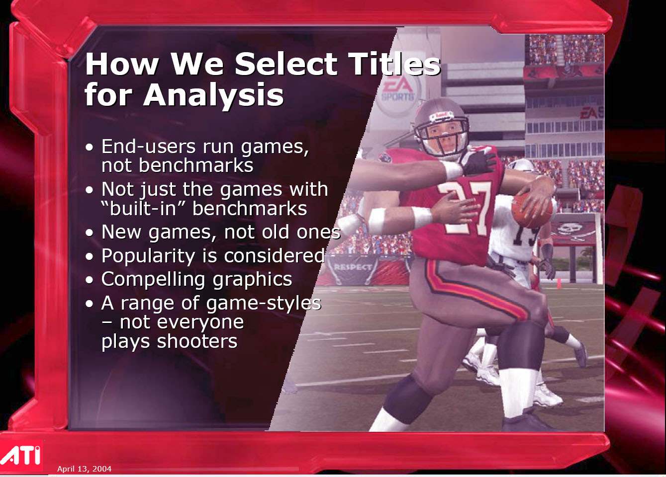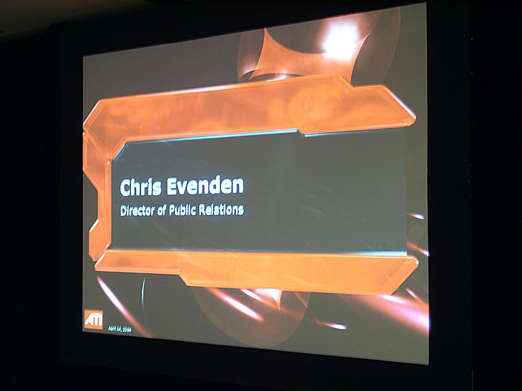 Первым взял слово Крис Эвенден (Chris Evenden) — руководитель маркетингового сектора ATI, он собственно, и вел все мероприятие.