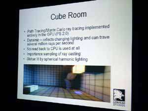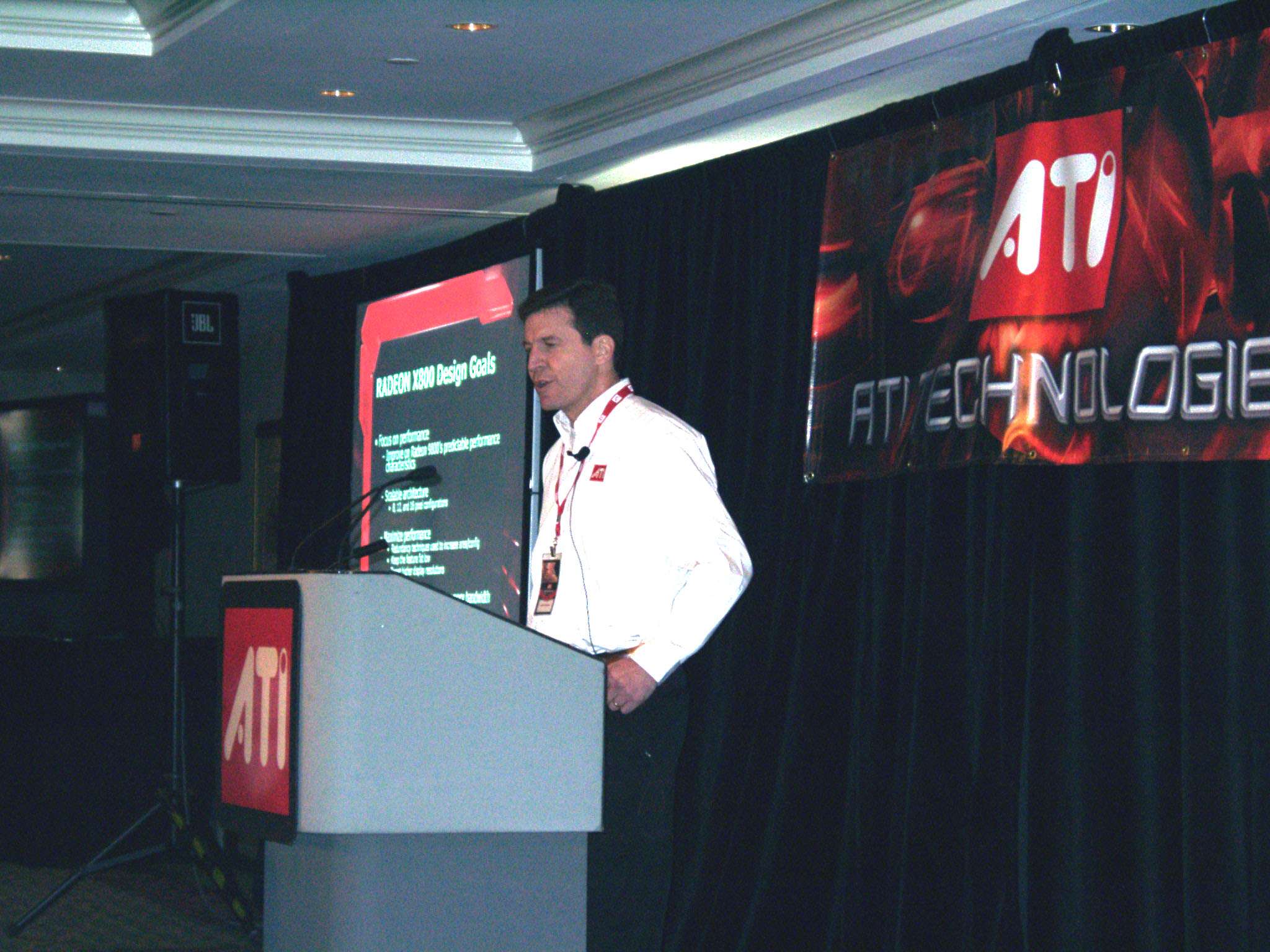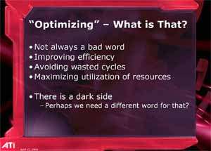 Следом шел доклад Боба Дребина (Bob Drebin), в котором Боб поведал о тонкостях архитектуры R420. Я не стану подробно останавливаться на этом, поскольку в нашем обзоре этого продукта вы сможете все узнать.