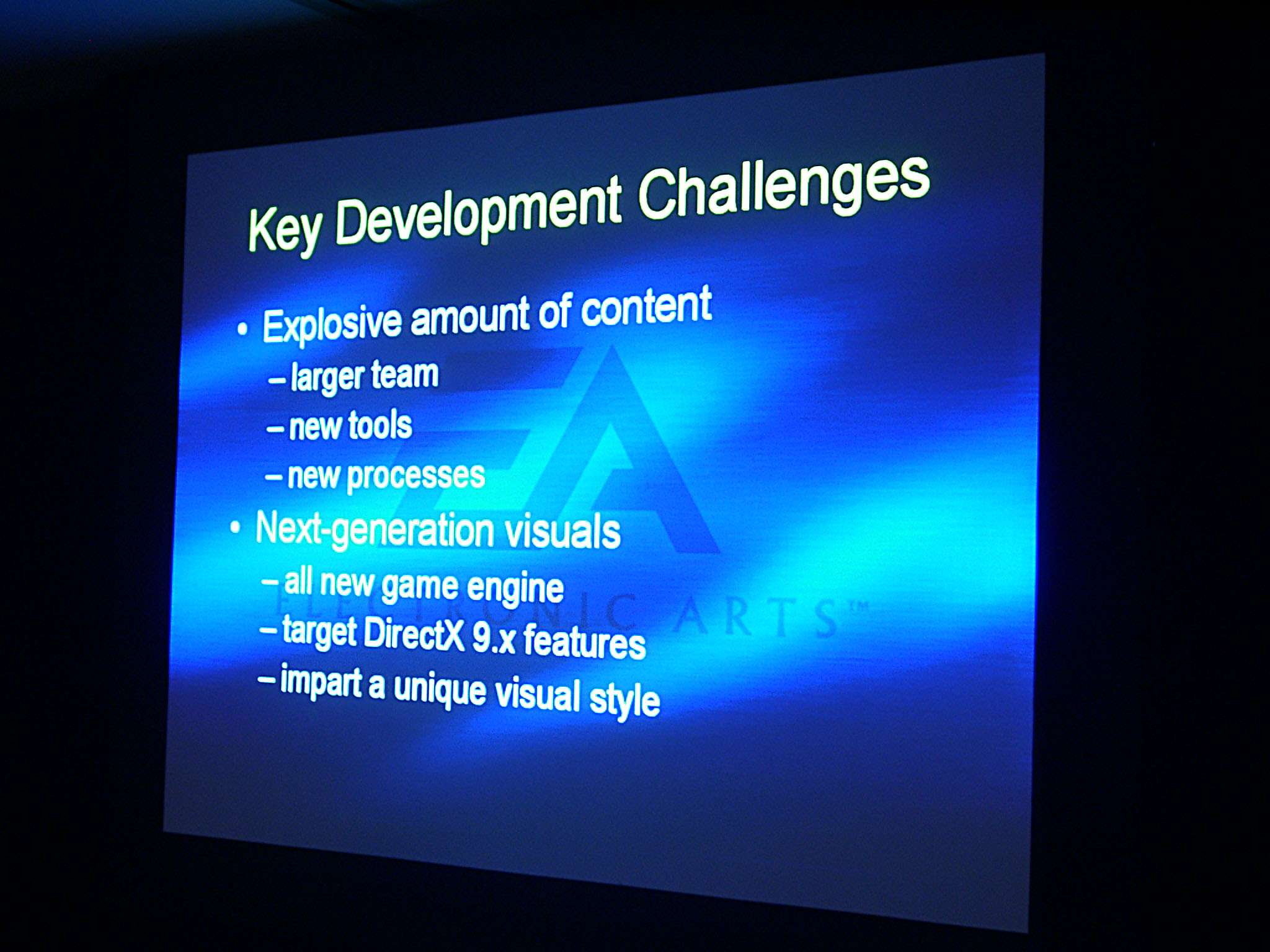 | Продолжили этакий многосерийный доклад уже разработчики из Electronic Arts и Lionhead Studios. Вначале слово предоставили Стиву Андерссону, вице-президенту компании. |