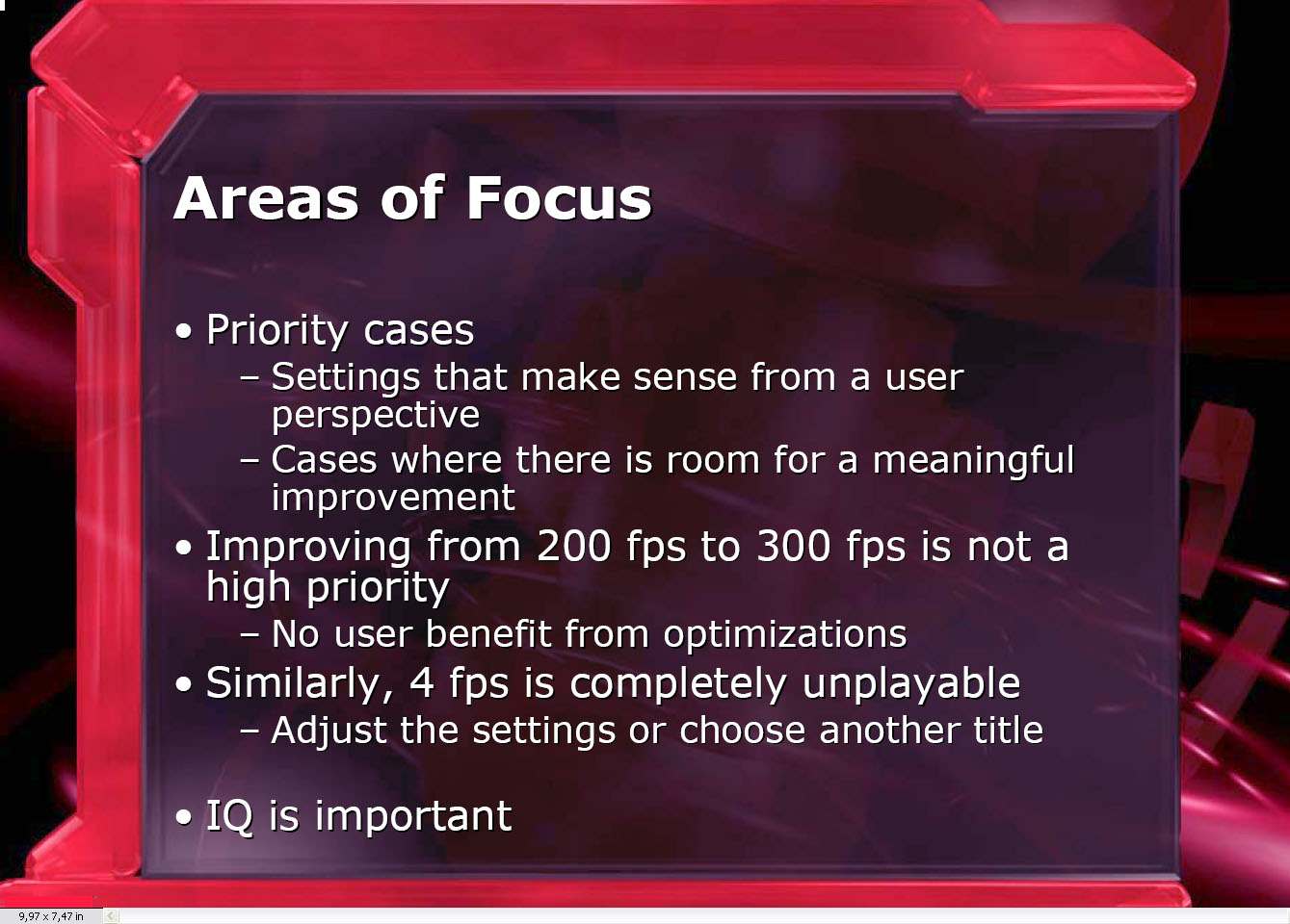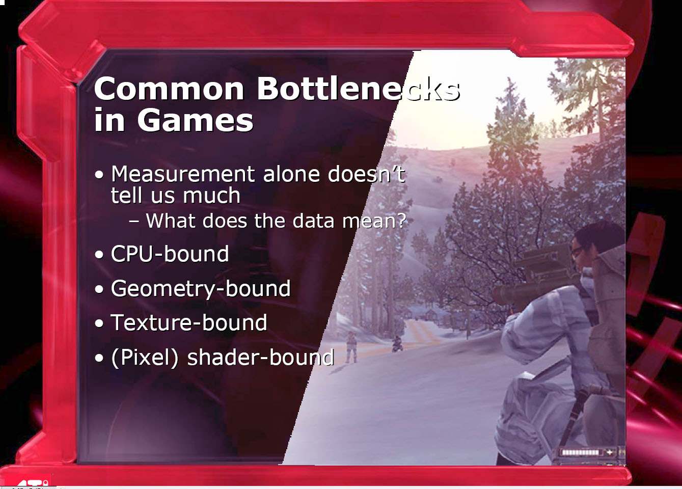 После обеда форум продолжил свою работу. Настал черед выступления Грега Эллиса (Greg Ellis), посвященного вопросам объективного измерения производительности 3D-ускорителей.