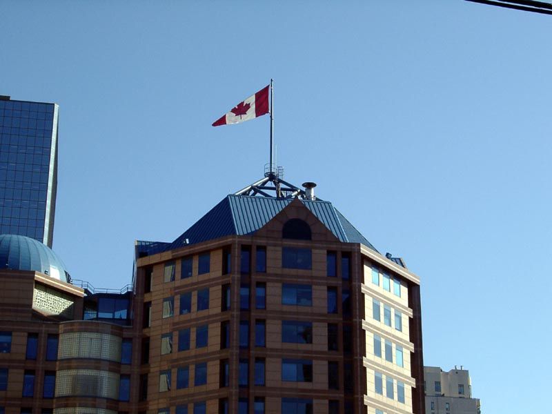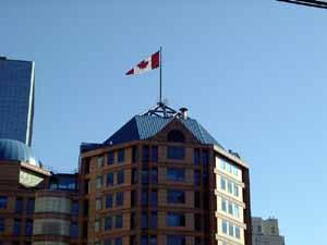 По поводу канадских флагов могу сказать, что патриотизм развит очень сильно, и флаги можно видеть везде и вся, а не только над государственными органами власти.