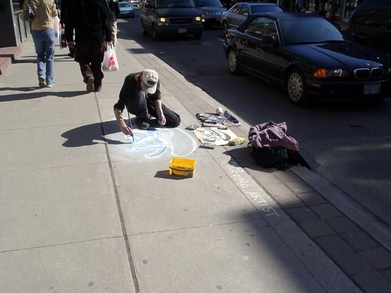 Комментируя очередной нижевыложенный блок фотографий, можно заметить, что художники на асфальте (слева) встречаются не так уже редко, причем, им все равно — на столь загруженной людьми улице они решили излить свои фантазии на серый фон дорожного покрытия. А справа мы можем увидеть ту самую пожарную станцию, где обитают машины, ранее нами виденные. Все такие станции весьма небольшие по размерам, но зато их много.