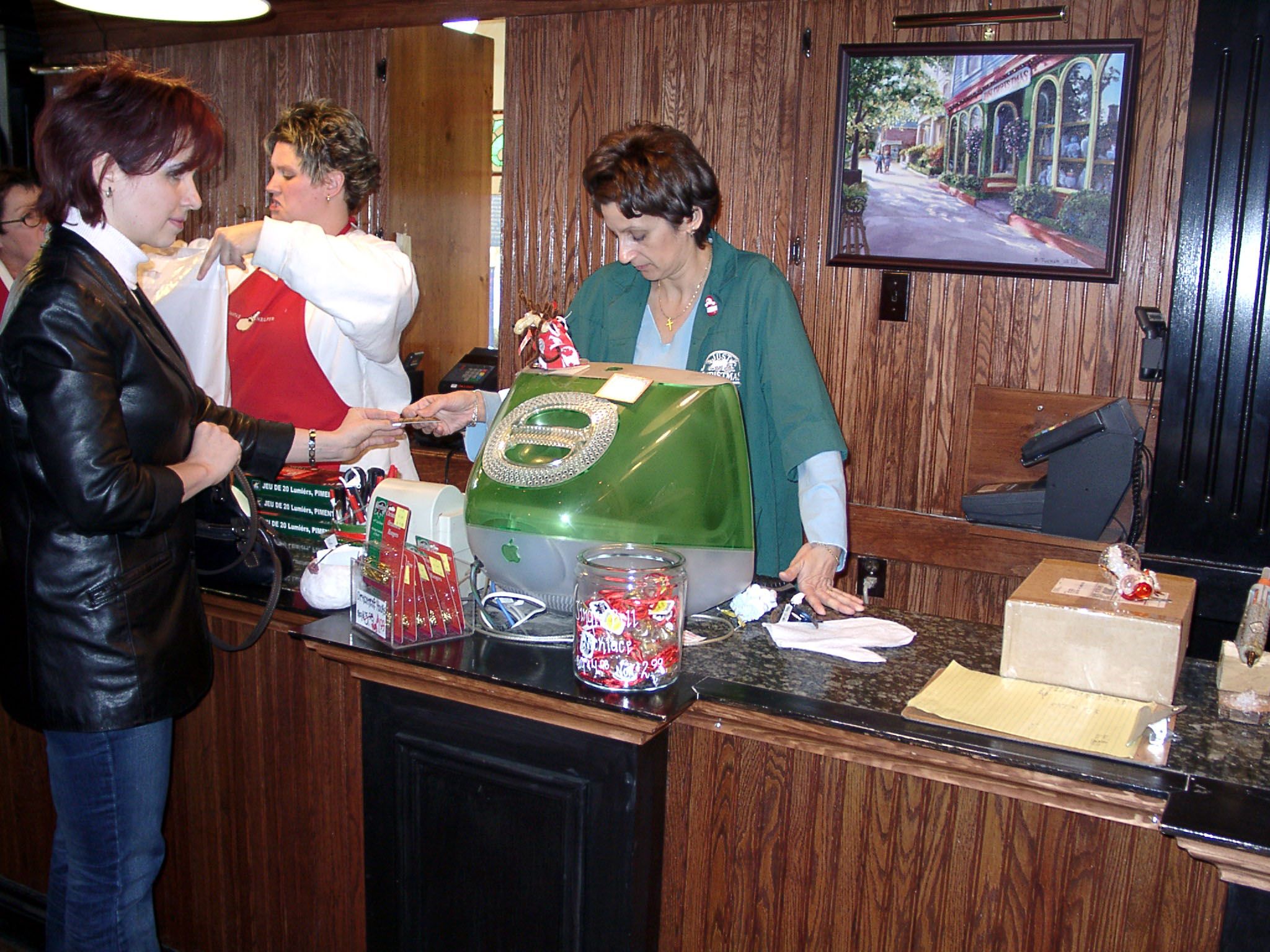 Мы не могли пройти мимо такого чуда! Заодно обратите внимание, что за компьютер стоит у продавца — iMac :-). Очень интересно также смотрится табличка с тем, сколько дней осталось до Рождества-2004.