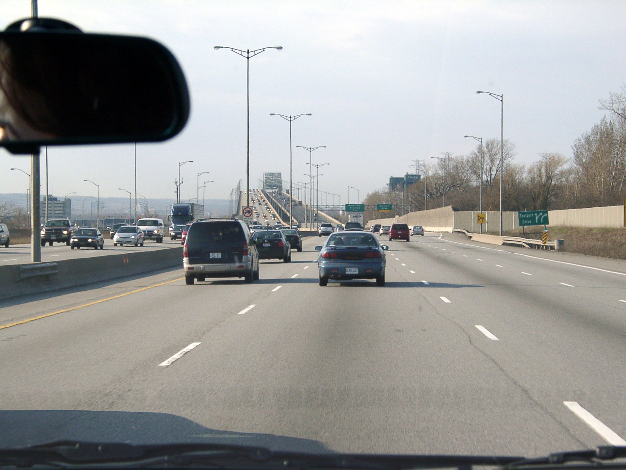 | Итак, из самого юга Канады мы едем снова к северу, к местечку Niagara-On-The-Lake. Кстати, напомню, что мы фактически были на границе между Канадой и США. Вот этот мост (на фото слева) является как раз пограничным, и если случайно ошибиться и на него заехать, то проблем не избежать, если вы не американец или канадец и нет действующей американской визы (разворот, чтобы уехать обратно, есть только уже на территории США). По рассказам, все же для случайно вот так попавших на этот мост, делаются исключения и под пристольным надзором пограничников дают развернуться на другом конце моста. |