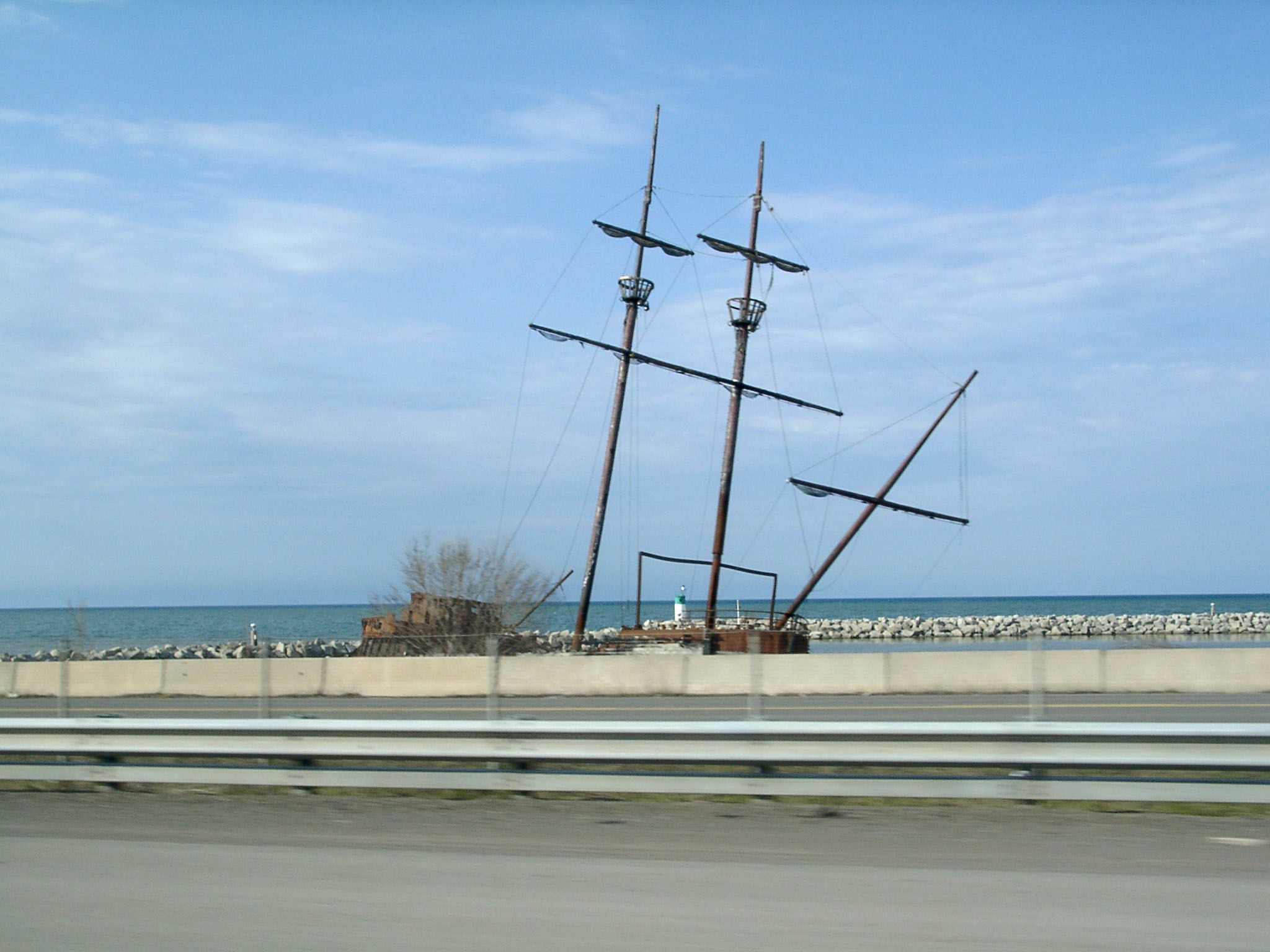 По пути встретился и парусник, давно списанный и выброшенный (внизу справа). Интересно то, что он был металлическим, а не деревянным!.