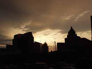 Небоскребы плавно погружаются в темноту…