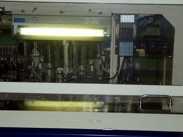 Внутри станка работает собственно монтирующее устройство, которое вы можете видеть на следующем снимке. Выглядит оно в действии, как знаменитый шестиствольный станковый пулемет (а по уровню производимого шума, пожалуй, даже даст ему фору).