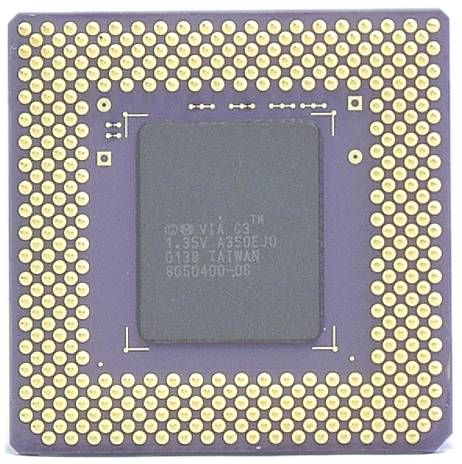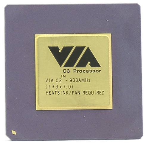 Имеющихся данных уже достаточно, чтобы понять, какой процессор наилучшим образом впишется в подобную систему и усилит ее. Конечно же, VIA C3, с его уникально низким энергопотреблением, что позволит не перегрузить блок питания и не повысить уровень шума, так как этот процессор вполне способен работать без активного охлаждения вентилятором (но радиатор все-таки нужен!). Все положительные качества, присущие старому C3 на ядре Samuel2, сохранились и приумножились в новом ядре Ezra, выполненном уже по 0,13-микронному техпроцессу. Следствием использования нового техпроцесса стали повышенная частота работы (у C3 Ezra она начинается с 800 МГц, тогда как линейка C3 Samuel2800-мегагерцовой моделью заканчивалась) и пониженное напряжение питания (1,35 В у Ezra против 1,6 В у Samuel2) — соответственно снизилась и рассеиваемая мощность.
