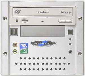 Внешний осмотр позволяет идентифицировать 16x DVD-ROM ASUS и обнаружить кучу разъемов. Спереди их всего две пары —Line In и Line Out и два USB, а вот на задней панели набор побогаче.