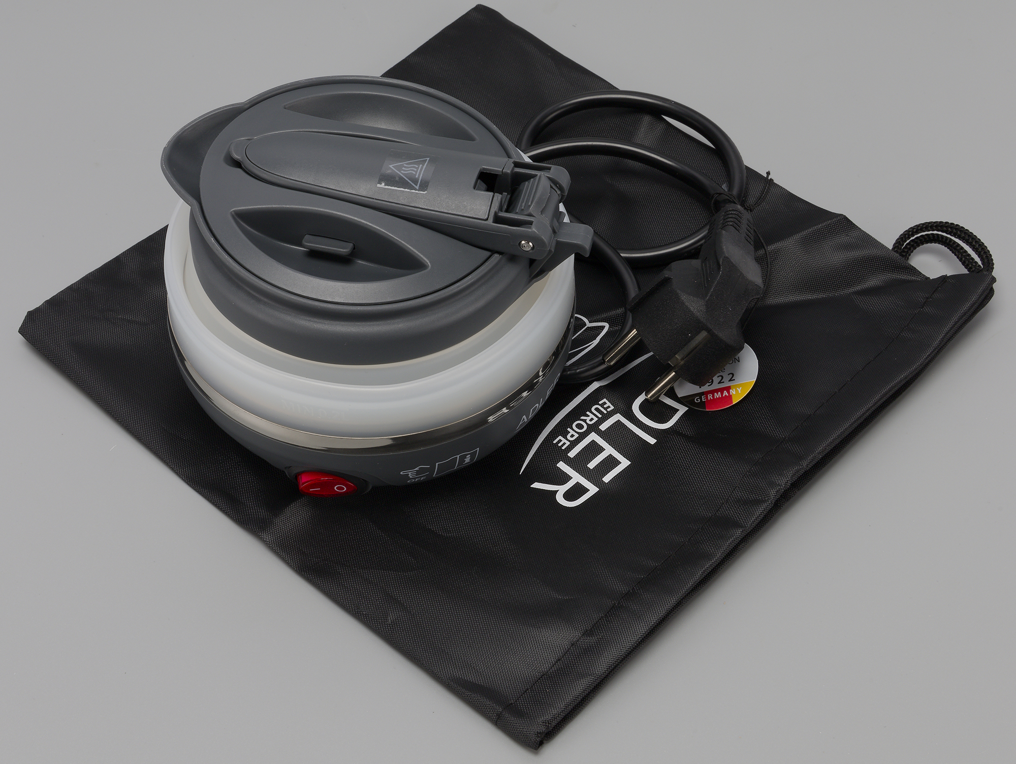 Герой нашего сегодняшнего обзора — ультракомпактный складной чайник Adler AD1279, предназначенный в первую очередь для путешественников. То есть для тех, кому время от времени нужен под рукой легкий и компактный чайник. Например, чтобы кипятить воду в гостиничных номерах.