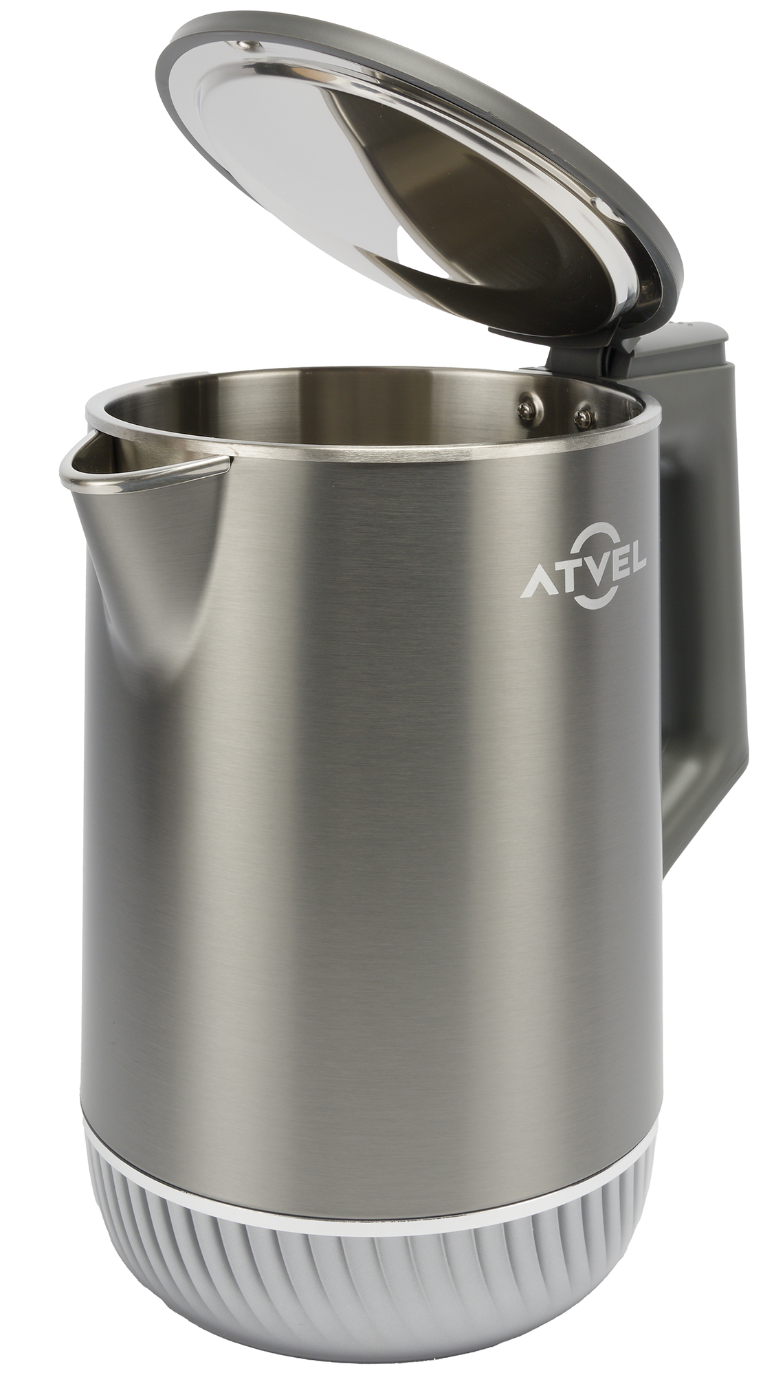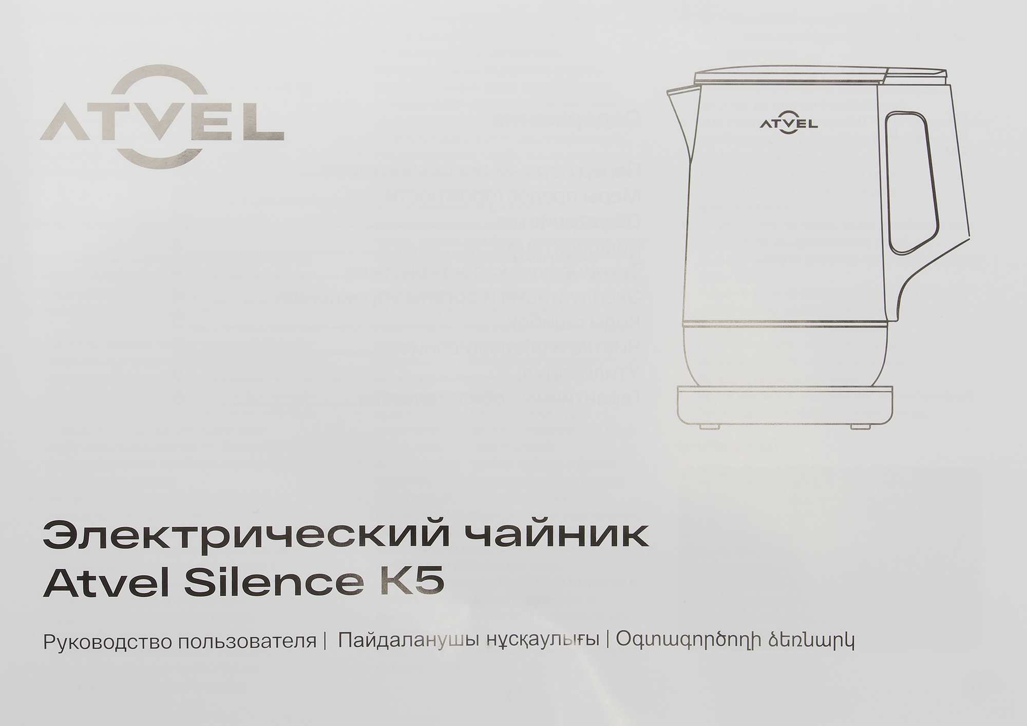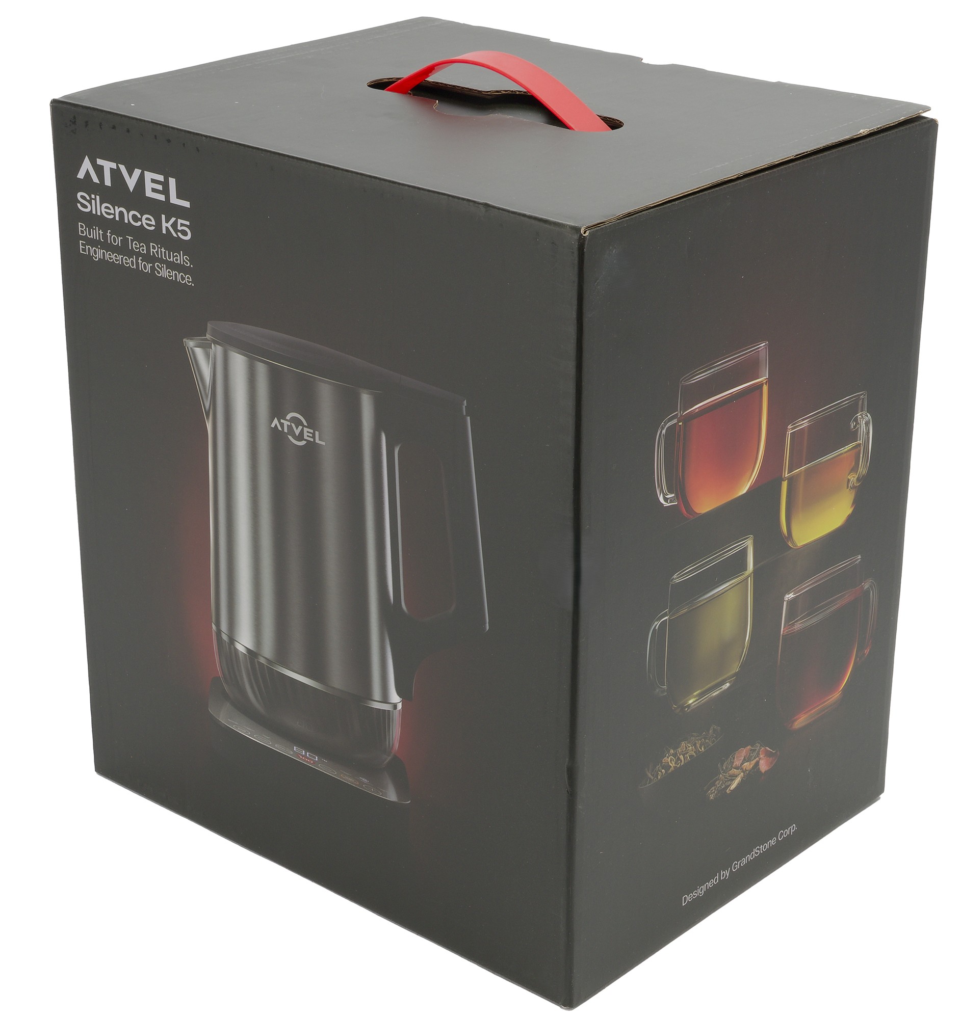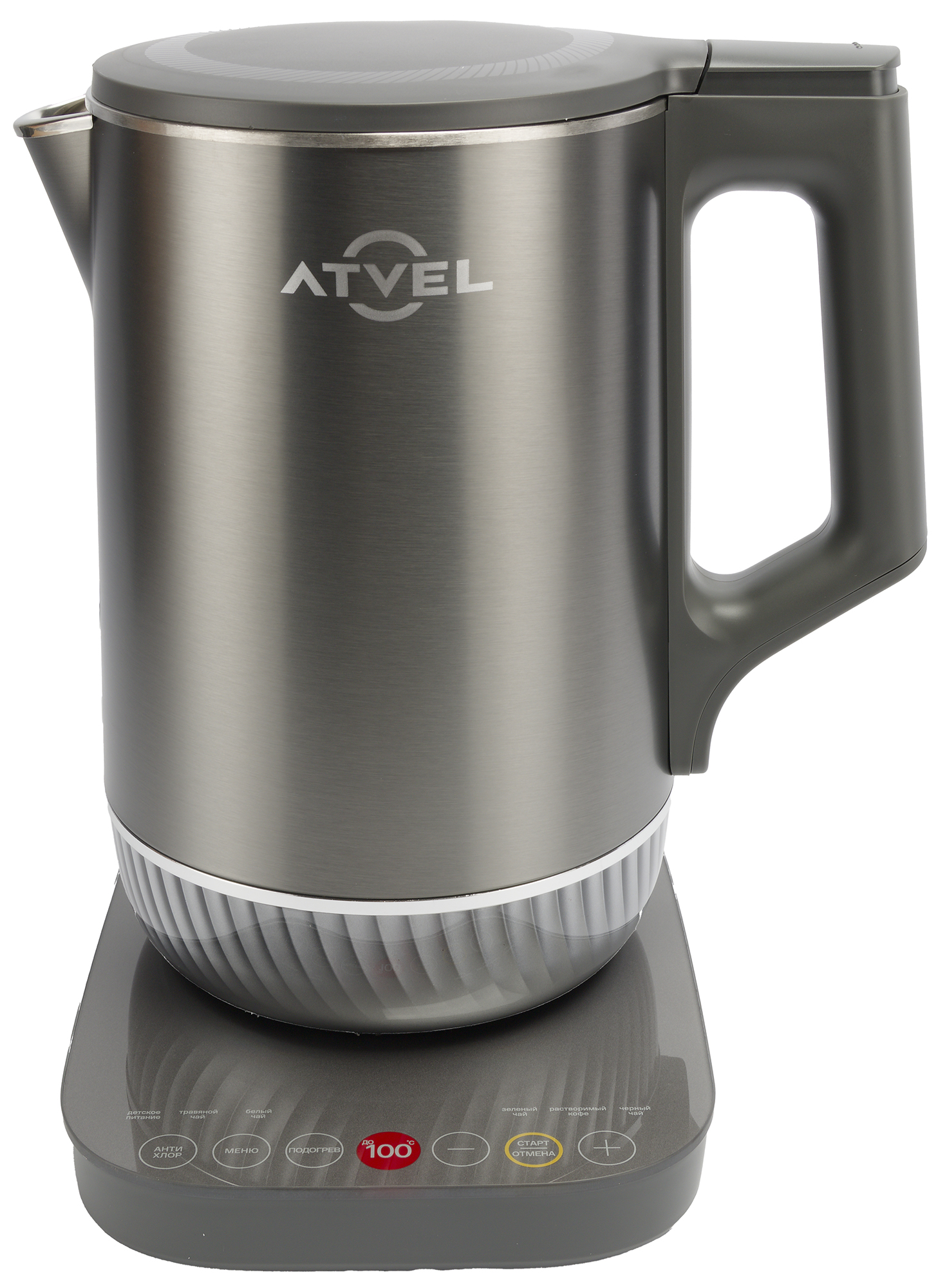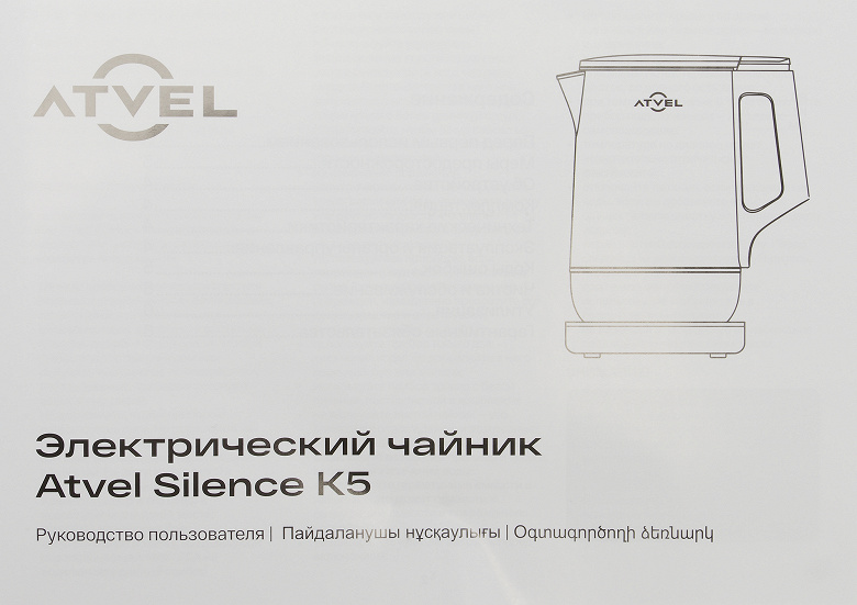 Atvel Silence K5 41101 — чайник с цельнометаллической колбой и двойными стенками, обладающий пониженным уровнем шума, гибкой регулировкой нагрева и функцией поддержания тепла в течение 4 часов.