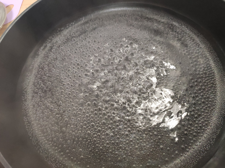 Как мы видим, степень прожарки оказалась равномерной по всей площади сковороды.