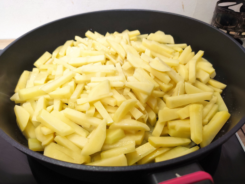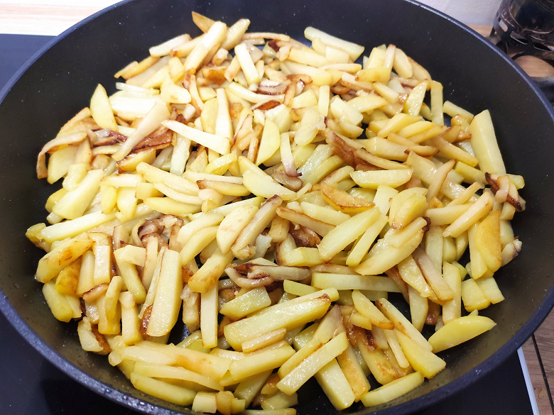 Что ж, проведем еще один эксперимент с обжаркой, но на этот раз усложним задачу. Выложим на сковороду большое количество картофеля и посмотрим, как справится поверхность с такой задачей.