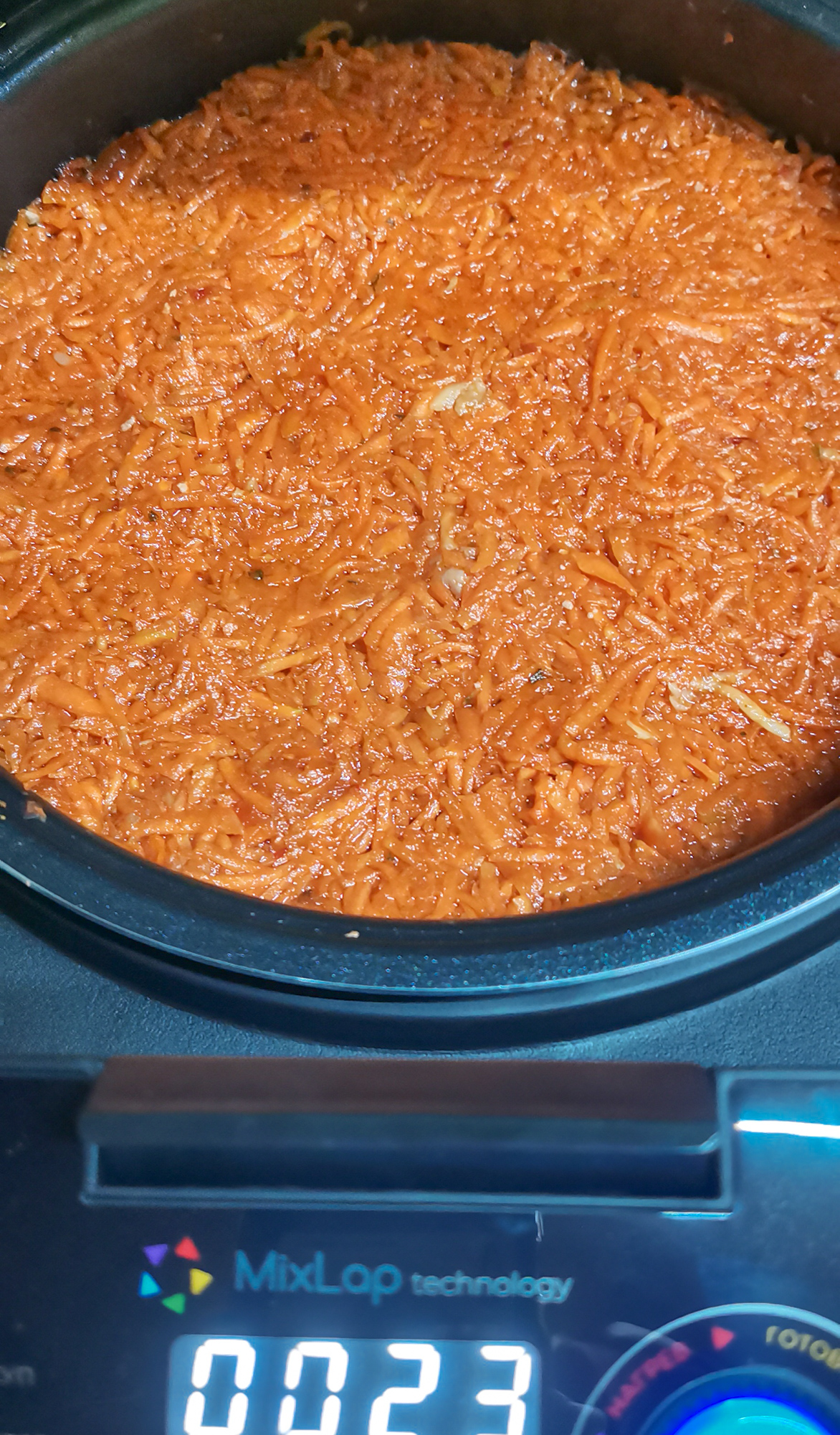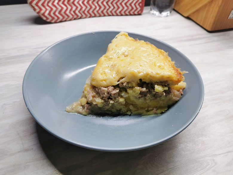 Мы тестируем много всевозможных овощерезок, терок и шинковок, поэтому готовили также и запеканки из тертых овощей. Сырые влажные, хоть и отжатые натертые овощи в мультиварках готовятся долго. А если добавить слой сырого же мясного фарша — совсем долго. Особенно, если делать большую запеканку. Тестируя мультиварку Garlyn MR-Max 5 мощностью 860 Вт и с пятилитровой чашей, мы замахнулись именно на такую запеканку. Взяли картошку, морковь, свинину, яйца и специи. Овощи и мясо измельчили с помощью мясорубки. Получили мелко натертую картошку и морковь и рубленый фарш, в который добавили соль и специи. В картофельную массу положили яйцо и выложили ее в чашу мультиварки, сверху — слой фарша, дальше — снова картошка и морковка. Смесь заняла почти всю чашу до верхней отметки 4 л. Выставили режим тушения (100 °C) на 2,5 часа, но по окончании фарш был сыроват в середине, как и морковь сверху. Выставили еще 2,5 часа в том же режиме. Как говорится, смеркалось. Вышло вкусно, сытно, но очень уж долго готовить: проще из пюре, хотя вкус совершенно разный.