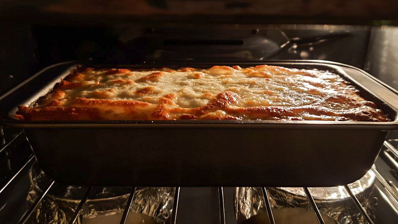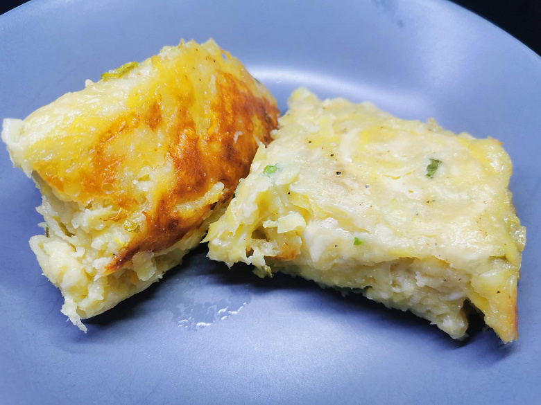Это же блюдо в духовом шкафу или в СВЧ с грилем получится по сути таким же, только с подрумяненной верхней корочкой. Как, например, у нас во время тестирования встраиваемого духового шкафа Candy COS625XLS.