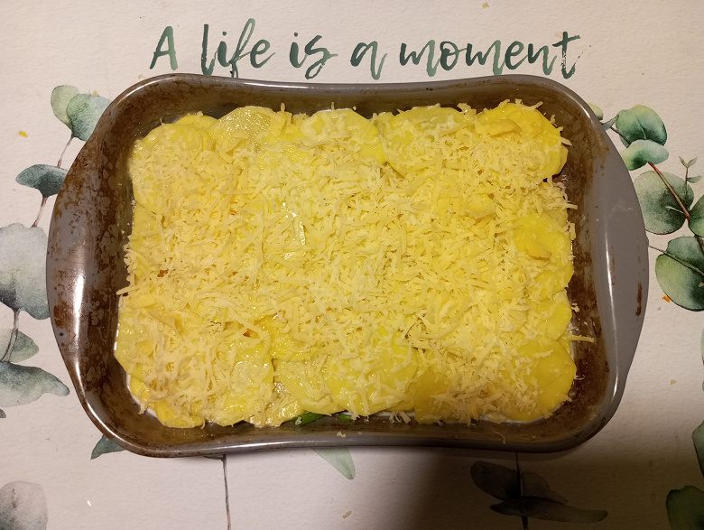 Такое блюдо называют гратеном (французская кухня детектед), картофель для него берется сырой очищенный, режется или натирается, а потом укладывается в форму слоями, перемежаясь с любыми начинками — грибной, овощной, мясной. Сверху, как и в предыдущем случае, кладется сыр.