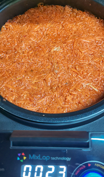 И в финале — запеканка из отварного риса с мясным фаршем. Это блюдо мы готовили в микроволновой печи Samsung MG23K3614AW с грилем и биокерамическим покрытием. Использовали размороженный в ней же фарш и остатки рассыпчатого риса, сваренного накануне. Фарш смешали с яйцом, специями, солью, разделили на две части, треть выложили на дно стеклянной емкости, разровняли вилкой. Сверху положили рис, смешанный с яйцом, а на слой риса ровным слоем уложили оставшийся фарш и залили сверху яйцом, смешанным с кетчупом, острым перцем и специями. Готовили на мощности 600 Вт на 25 минут. По окончании этого времени верх запеканки был еще сыроват, поэтому мы включили режим средних микроволн + гриль и подержали блюдо в печи еще семь минут. Сверху образовалась красивая корочка, под которой достаточно равномерно приготовился фарш.