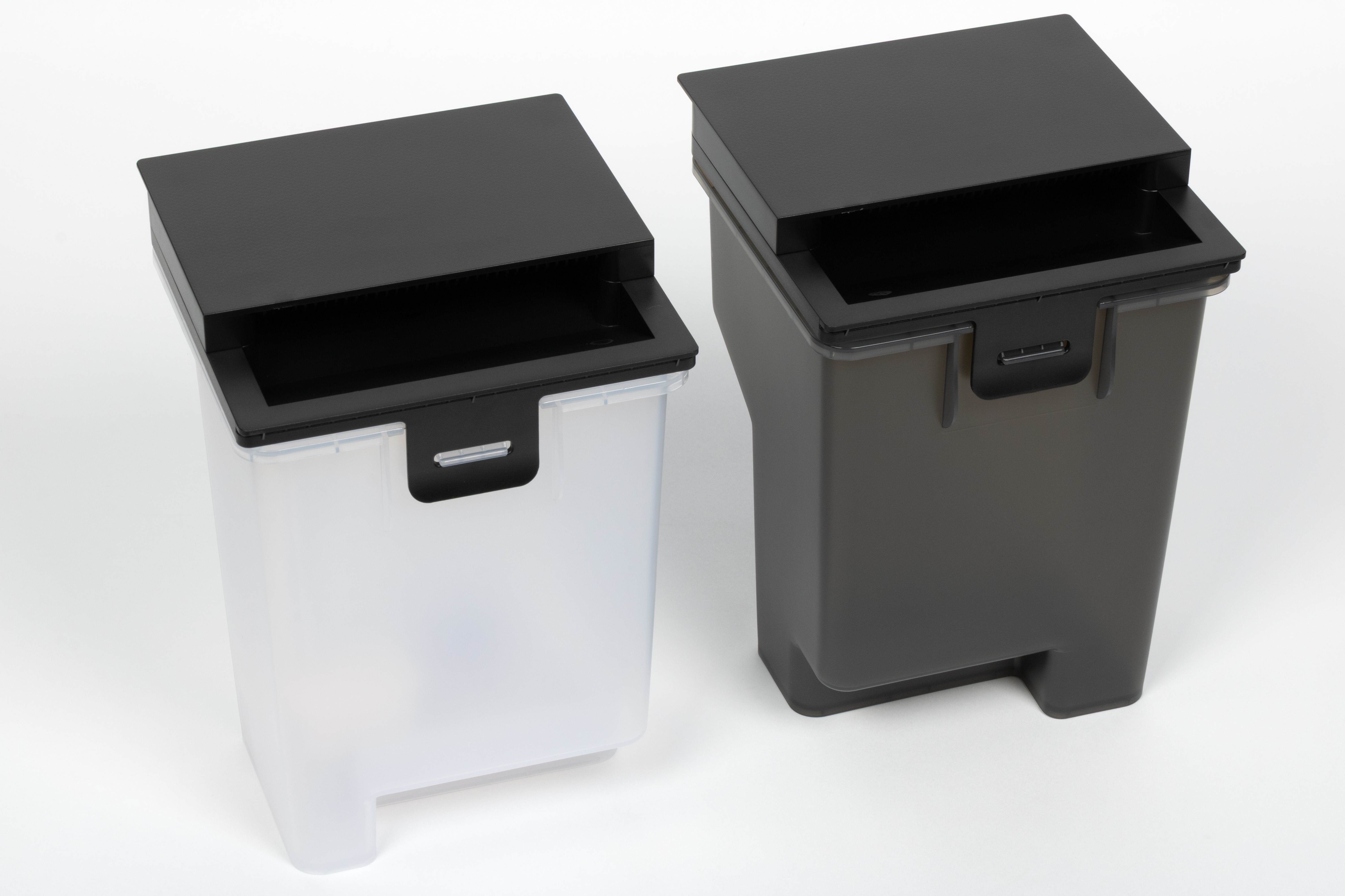 Бак для чистой воды имеет чуть больший объем и сделан из белого матового пластика. Бак для грязной воды — чуть меньше, пластик у него затемненный.