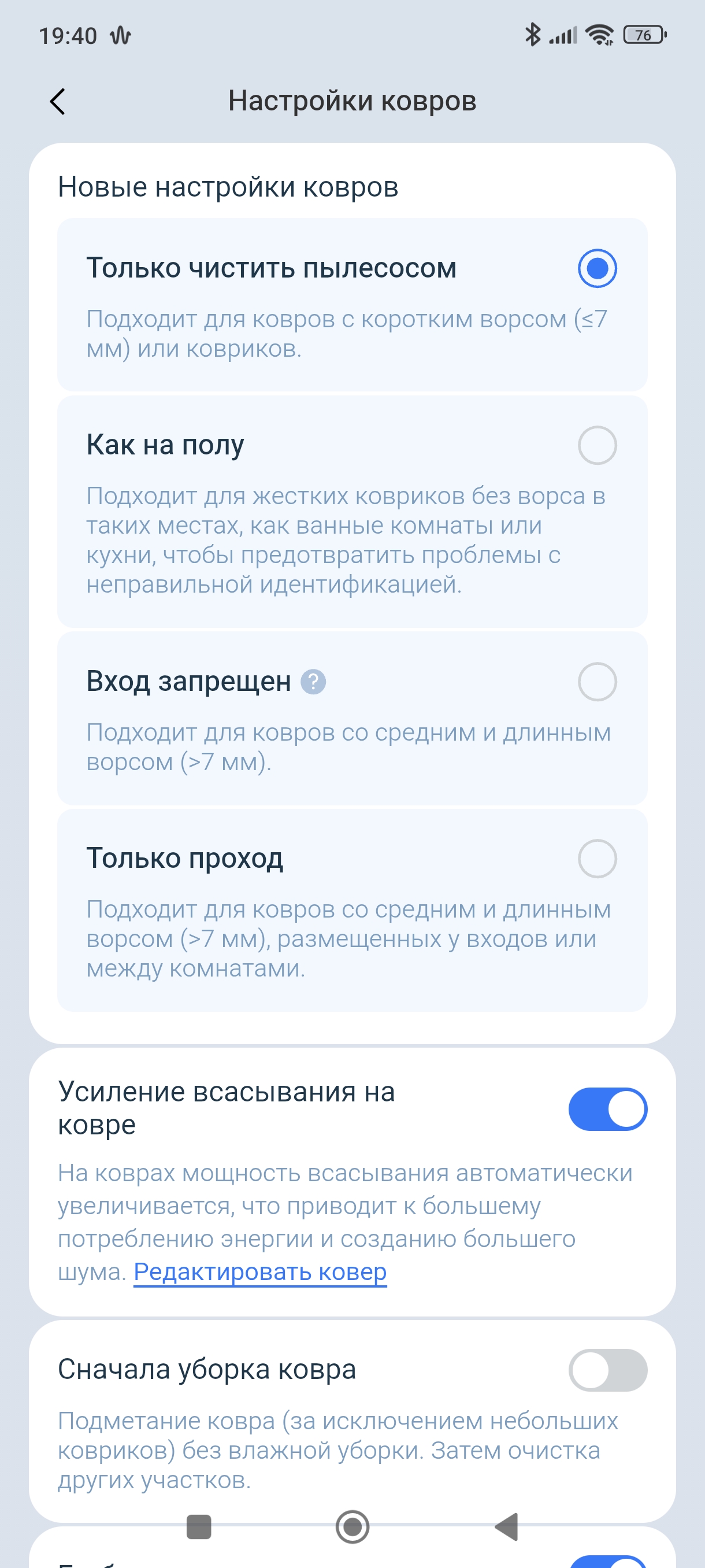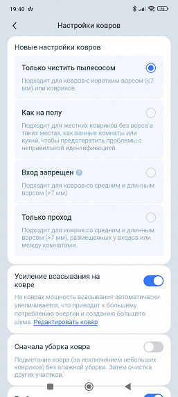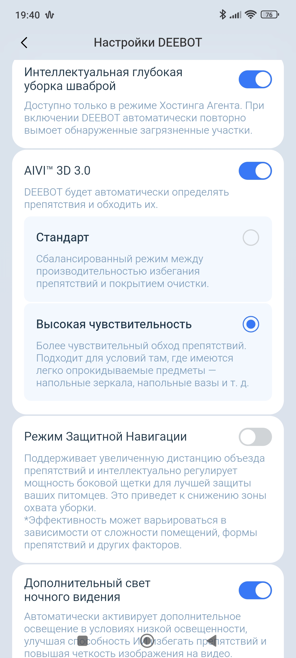 Все остальные дополнительные опции и дополнительные режимы вполне предсказуемо прячутся в мобильном приложении. Ведь без него современный робот попросту не может функционировать как положено.