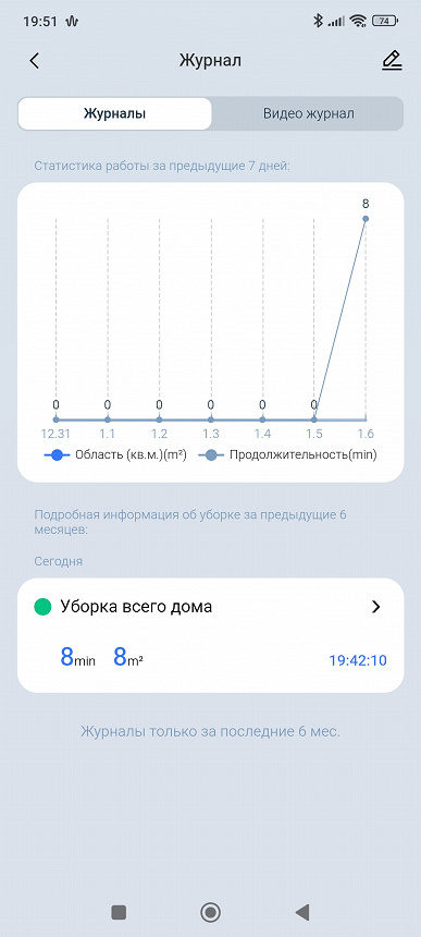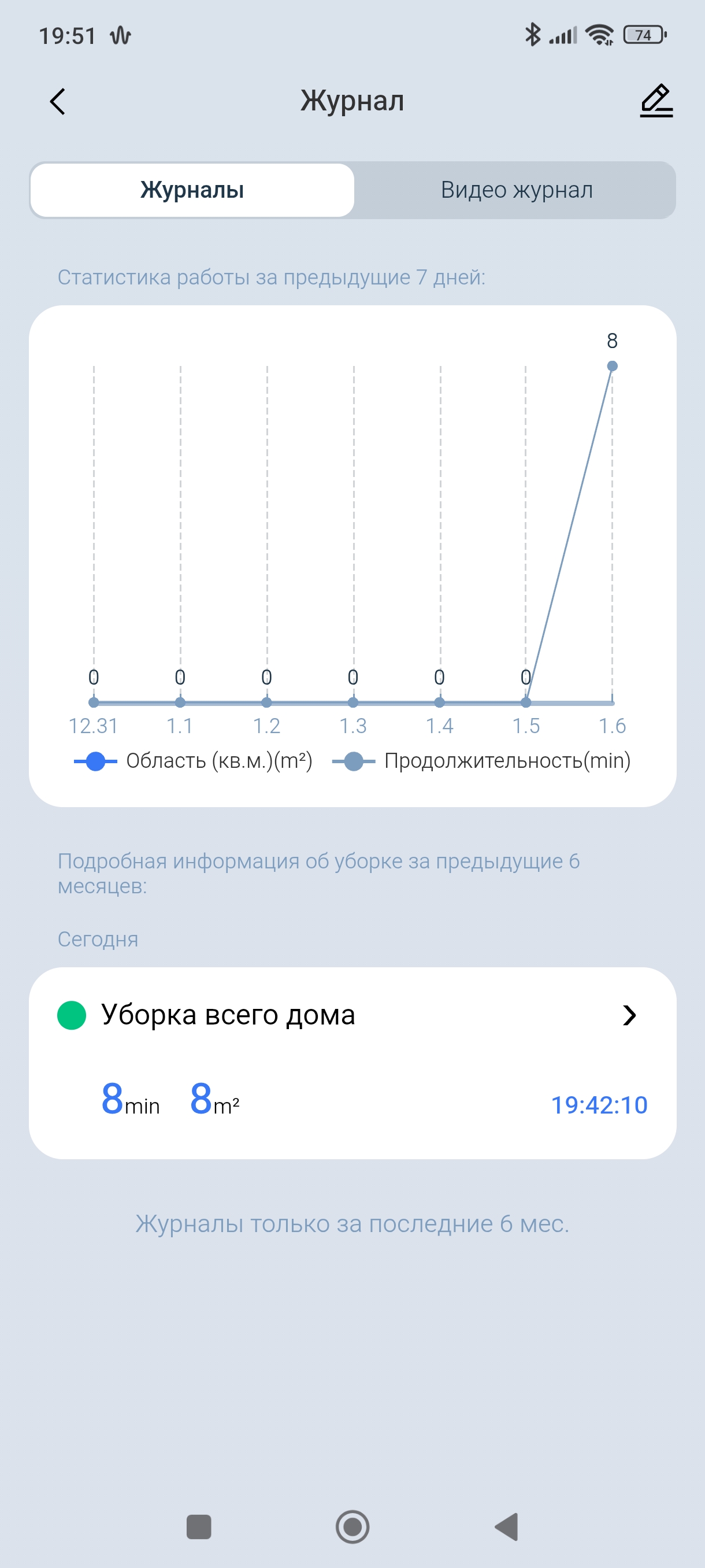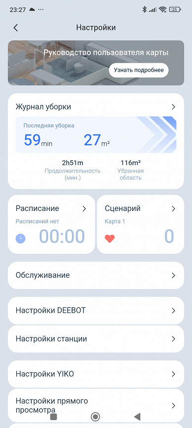 Естественно, тут же можно посмотреть карту, маршрут робота во время уборки, статистику уборок...