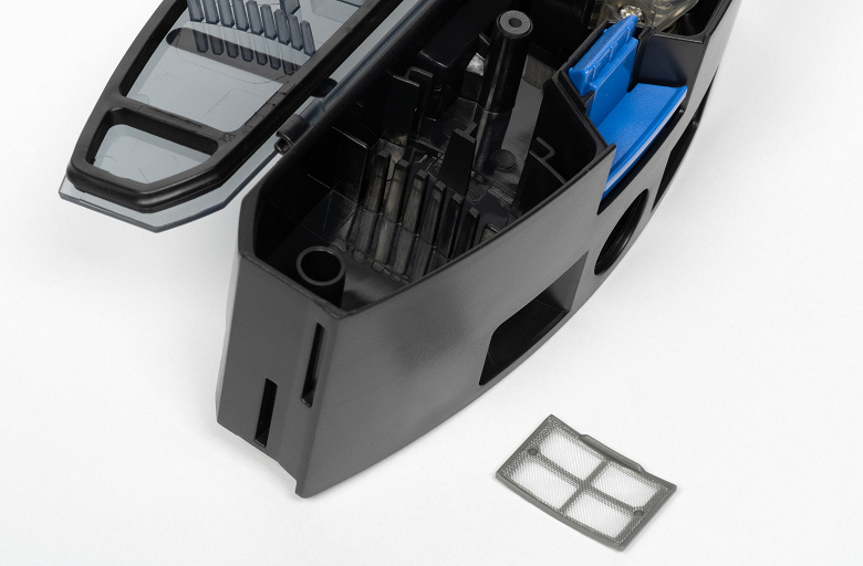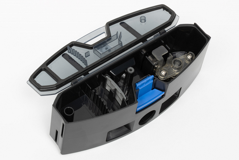 При необходимости контейнер можно разобрать и очистить вручную. Делать это, впрочем, в режиме повседневной эксплуатации не придется: весь мусор будет удаляться станцией самоочистки, а внутрь контейнера пользователю придется заглядывать, разве что, если что-то застряло внутри. Ну или если пришла пора очистить или заменить HEPA-фильтр.