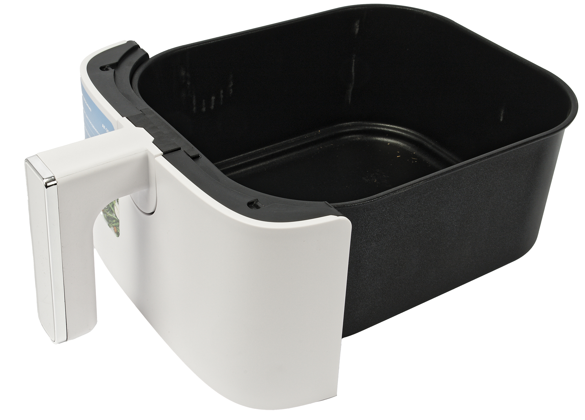 Чуть больше половины нижней части корпуса занимает отсек для установки выдвижной корзины. Рекламная наклейка с внешней поверхности удаляется легко, без клеевого следа.