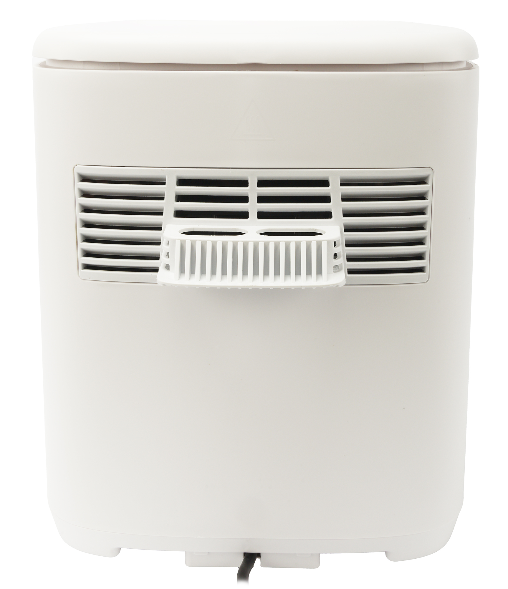 Метровый шнур крепится к корпусу с задней стороны. Вверху есть ограничитель, не позволяющий установить прибор вплотную к стене, перекрыв тем самым вентиляционные прорези.