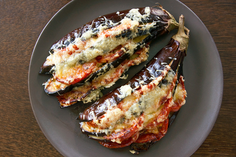 Баклажаны с помидорами, чесноком и сыром
