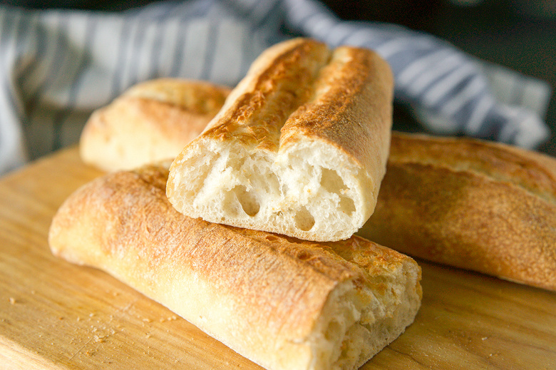 Предварительно хлеб при комнатной температуре мы не выдерживали, отправили выпекаться как есть, сразу из морозилки. В этом тесте предустановленные параметры программы Выпечка нам подошли — багеты приходили в чувство при 175 °C в течение 10 минут.