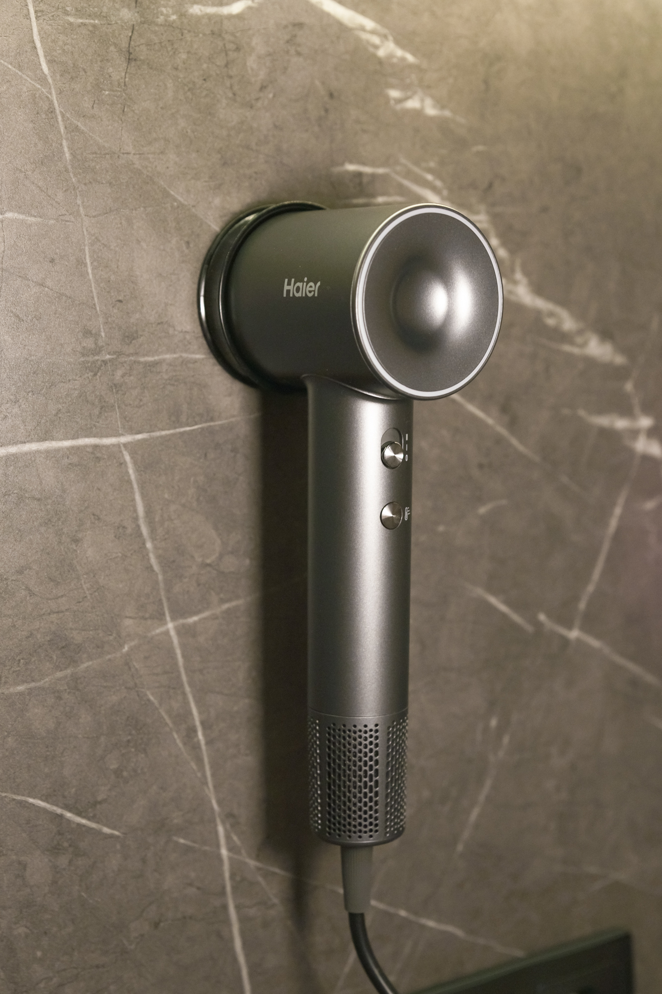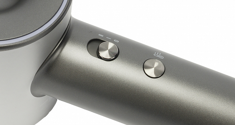Фен нейтральной расцветки выглядит современно, аккуратно и стильно. Он оснащен мощным двигателем, имеет простое управление с наглядной цветовой индикацией температуры и умеренный уровень громкости. К плюсам отнесем также крепление на стену с магнитной фиксацией для комфортного хранения и, конечно, легкость и компактность корпуса, что делает его идеальным для путешествий.
