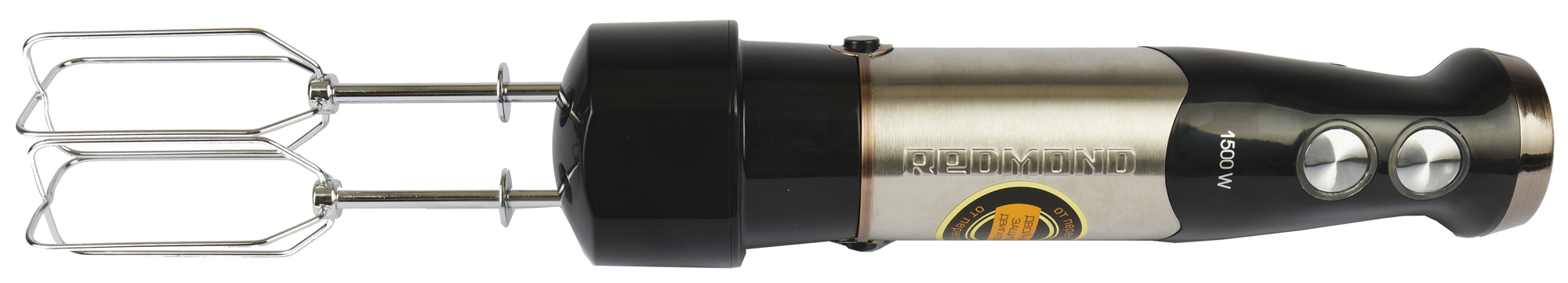 Ну что тут расписывать, казалось бы? В комплектации каждого погружного блендера — и простого, и «сто в одном» и заменяющего кухонный комбайн, есть насадка-венчик. Взбивай — и дело с концом. Но у нас был и отличный, и не совсем удачный опыт с очень хорошим прибором, поэтому можем дать некоторые рекомендации на примере многофункционального блендера Redmond RHB-CB2988 «9 в 1». Тестируя его и пытаясь приготовить тесто для бисквита, мы обнаружили, что классическая насадка при установке на моторный блок оказалась слишком длинной, поэтому взбивать ею яичную массу было неудобно. К тому же минимальная скорость для этой насадки явно слишком высока, поэтому содержимое стандартной широкой миски глубиной 9 см разлеталось по всей кухне даже на первой скорости и при наклоне емкости. То есть использовать венчик слишком мощного блендера удобно только в более глубокой посуде. Продолжили приготовление теста и воспользовались второй насадкой — миксером с двумя венчиками. Вот она справилась превосходно, но такая насадка есть далеко не у всех блендеров. Проще — вот правда — пользоваться обычным миксером с двумя венчиками. Это не совсем удобно в сравнении с миксером планетарным, потому что заняты руки и надо делать паузы в работе для добавления ингредиентов и чтобы дать передохнуть и остыть мотору, но длинная насадка-венчик для блендера может подвести при определенных условиях (слишком высокая минимальная скорость, слишком длинная насадка).