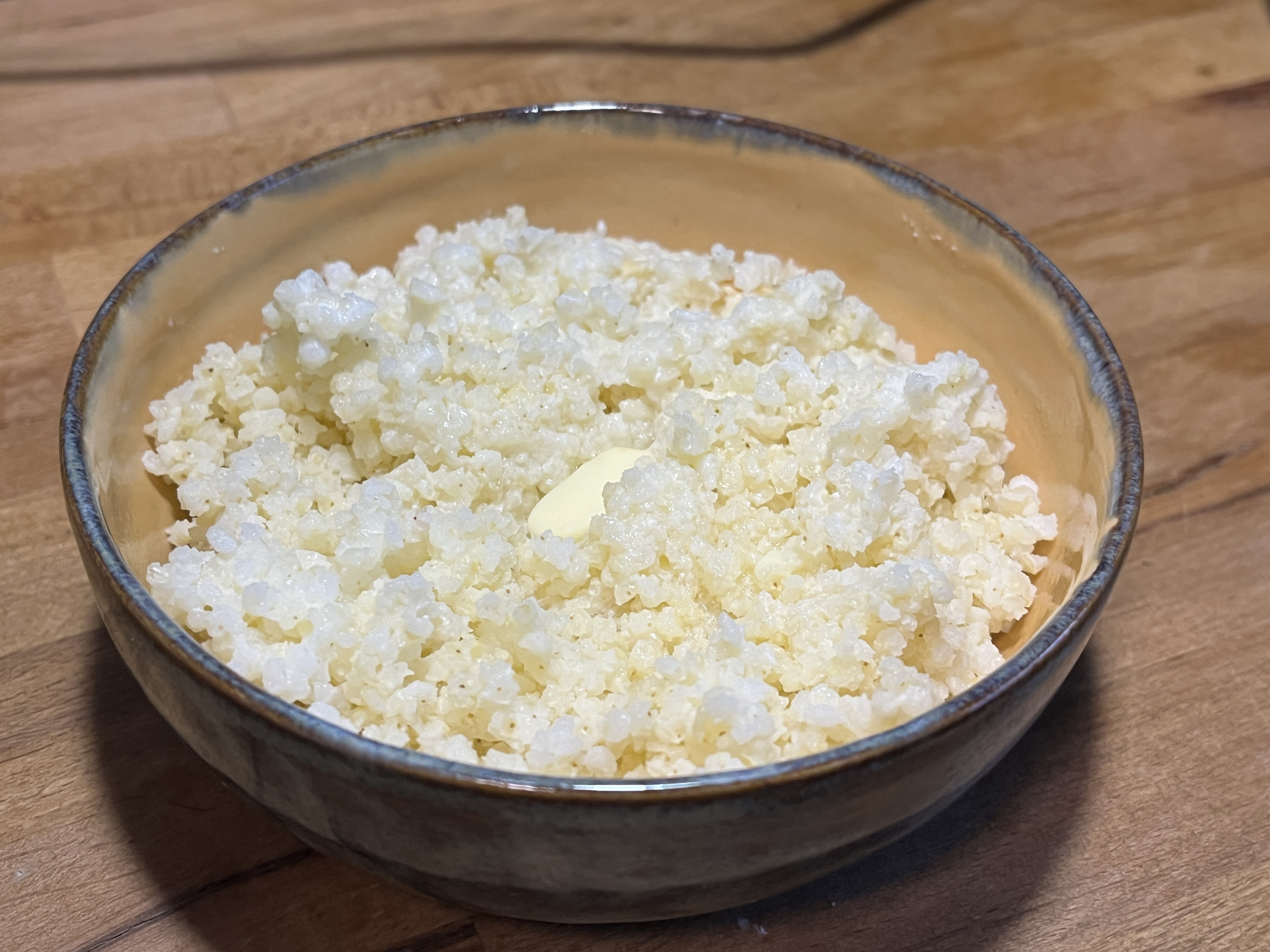 Для этих целей мы подготовили ультрапастеризованное молоко, которому не страшно провести ночь при комнатной температуре, пшено, немного воды, 1,5 столовых ложки сахара, чайную ложку соли и сливочное масло.