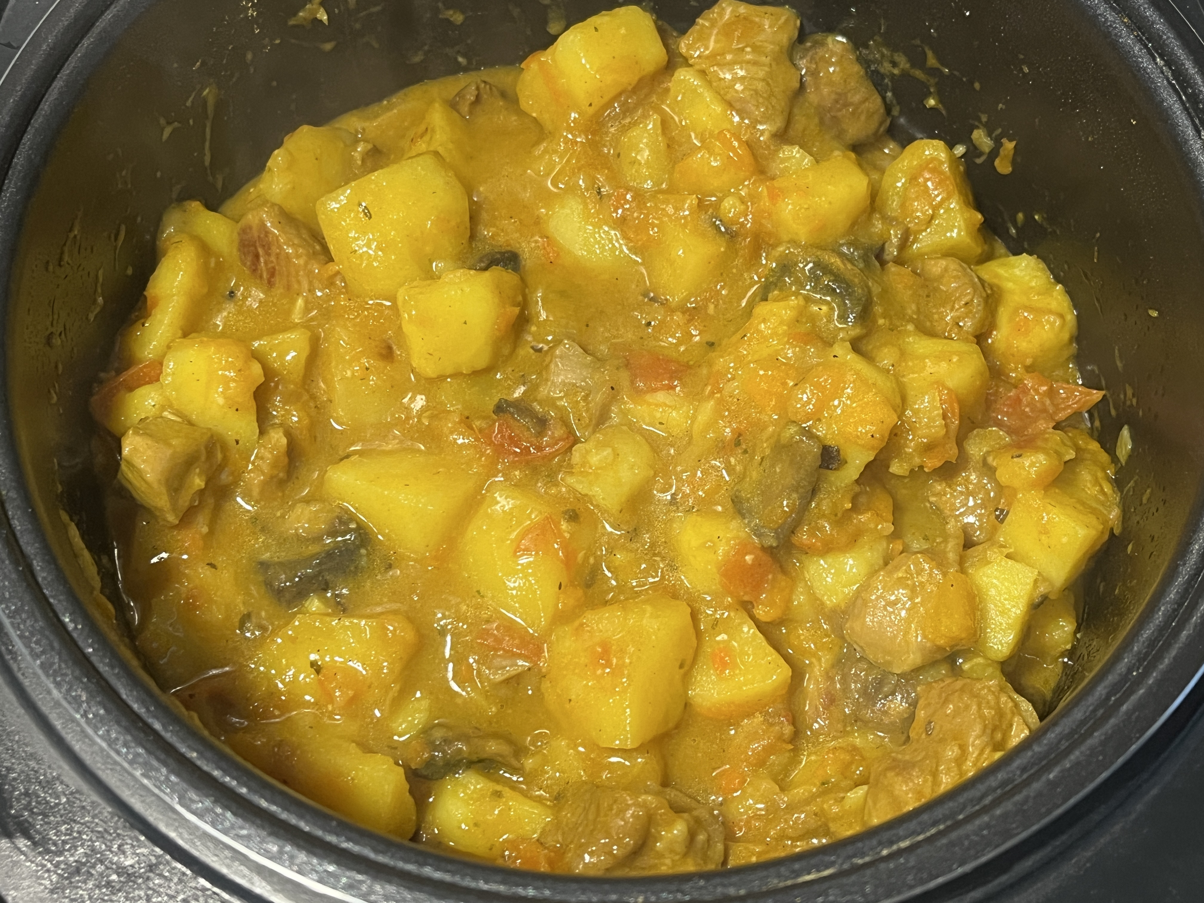 Рагу получилось отличным — мясо распадалось на волокна и было сочным, картофель и овощи впитали в себя все специи, а соус не давал блюду остыть в тарелке.