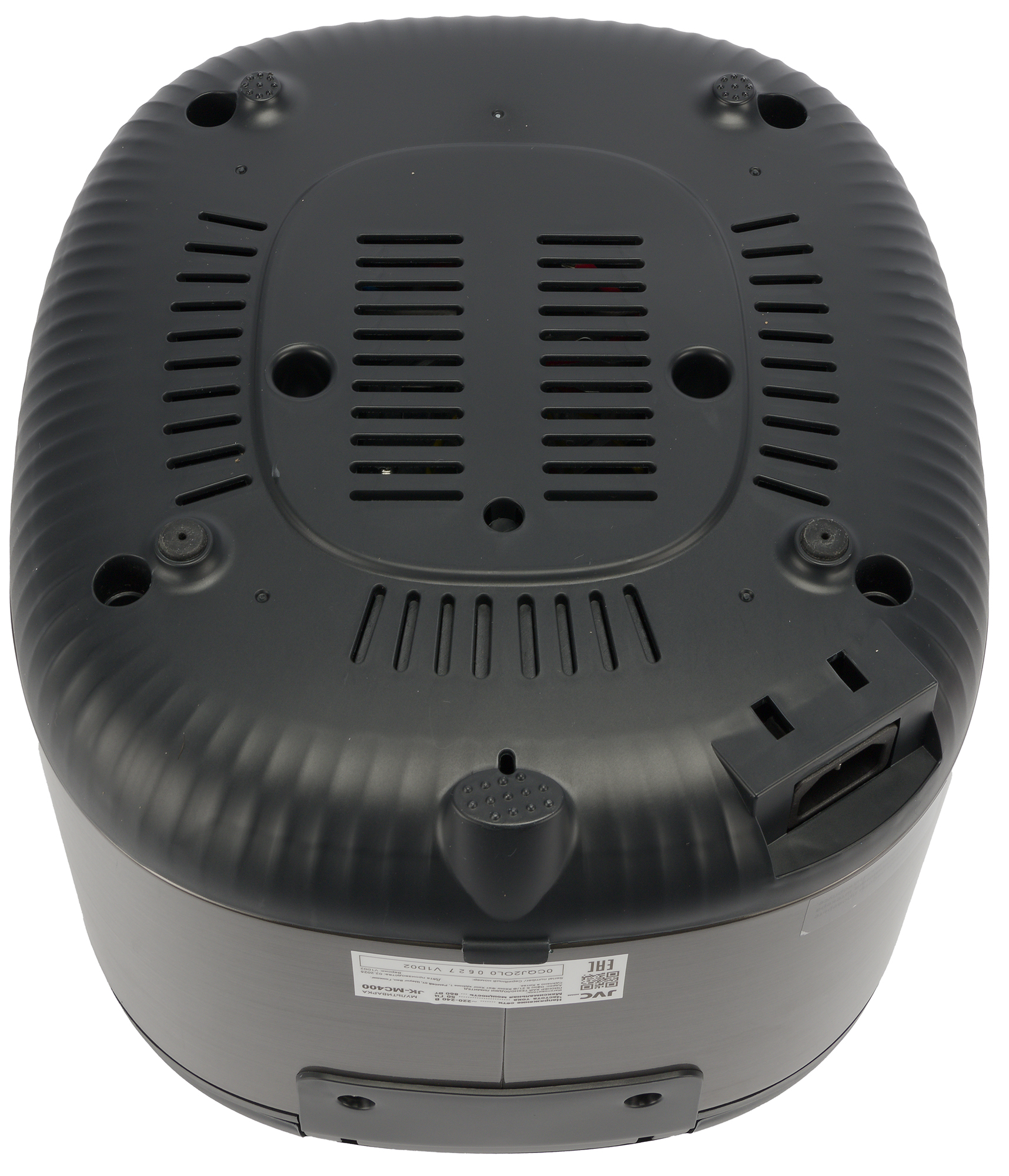 JVC JK-MC400 по форме будет ближе всего будет к параллелепипеду со скругленными углами. Прибор небольшой, аккуратный и симпатичный.