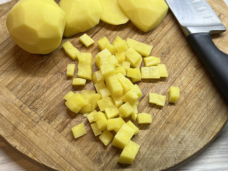 Не спеша очистили и нарезали картофель и подготовили птитим.