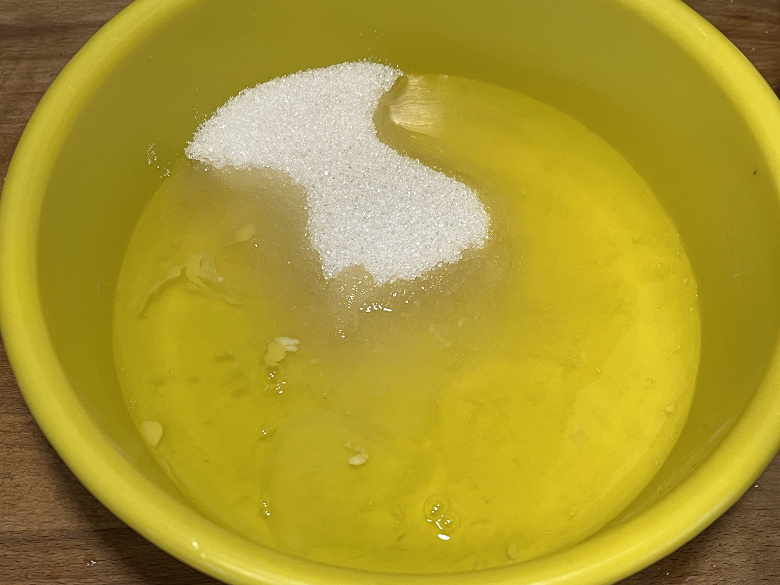 Белки отделили от желтков и аккуратно взбили их с сахаром.