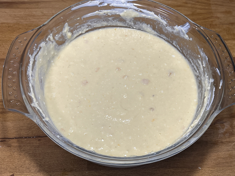 Белки добавили к остальным продуктам с помощью ложки и аккуратно перемешали, чтобы сохранить воздушность.