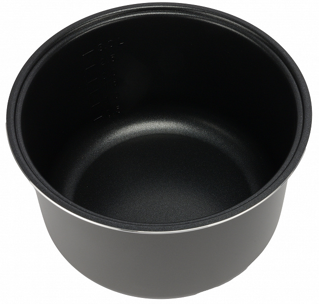 Чаша выполнена из металла с антипригарным покрытием Daikin, что позволяет готовить с минимумом масла или даже без него. Она легко очищается от загрязнений и не впитывает запахи.
