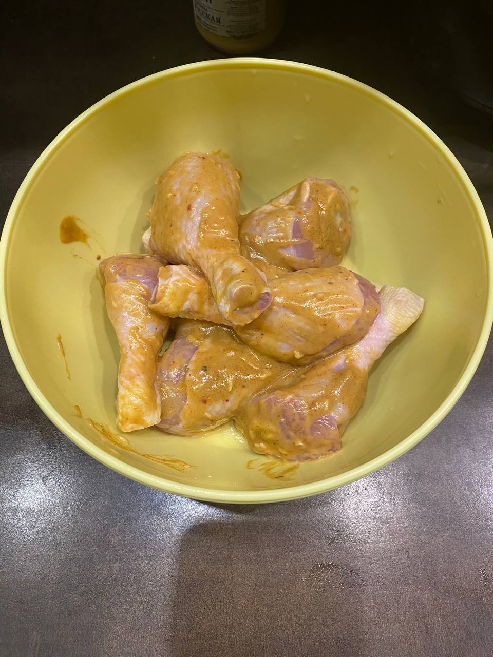Ножки натерли смесью специй и оставили мариноваться на 20 минут.