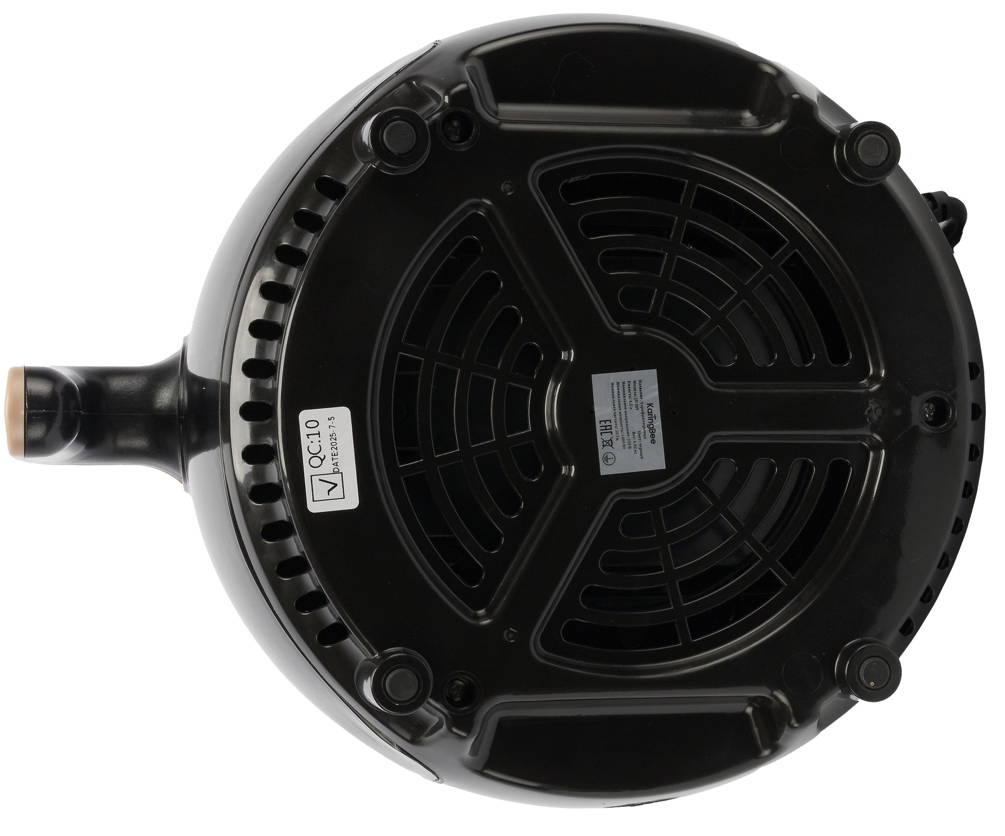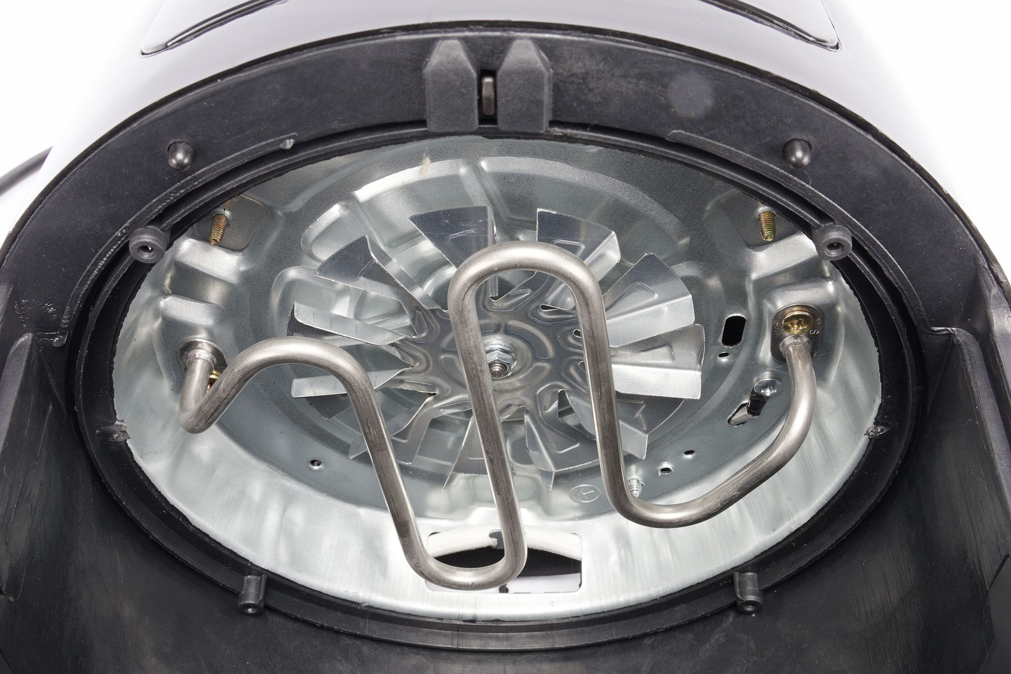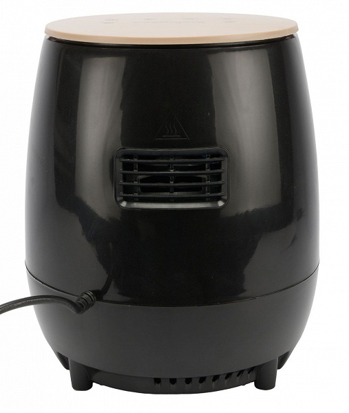Нагревательный элемент размещен в верхней части устройства, сразу над чашей. Он выполнен в виде спирали, над которой находится вентилятор для равномерного распределения горячего воздуха.