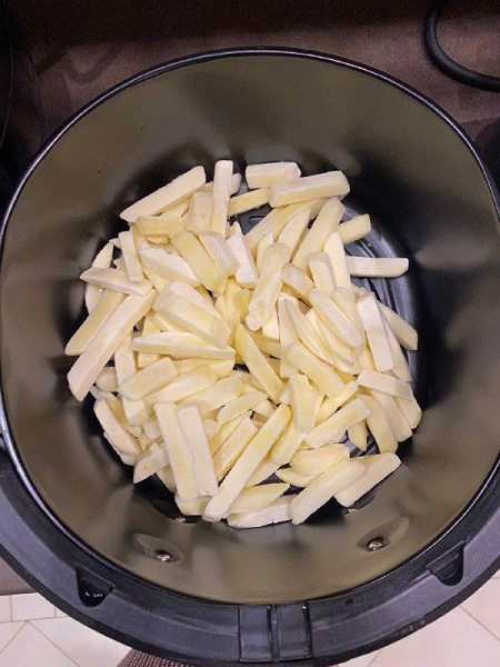 Для теста мы использовали магазинный замороженный картофель-фри. Загружаем его в емкость аэрофритюрницы и выбираем режим Chips, что казалось логичным решением. По умолчанию время приготовления в этом режиме составляет 40 минут.
