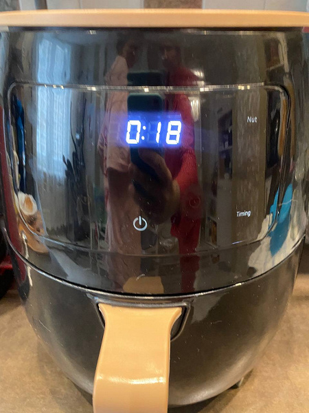 Данная функция, по сути, представляет собой таймер отсрочки — установку времени, к которому блюдо должно быть подогрето, например, орехи прогреть или еду поддерживать теплой. Назначение этой функции в контексте аэрофритюрницы остается не вполне ясным. В отличие от мультиварки, где логика отсроченного приготовления оправдана (например, к определенному времени приготовить кашу), в аэрофритюрнице практически всегда требуется визуальный контроль степени прожарки и готовности блюда.