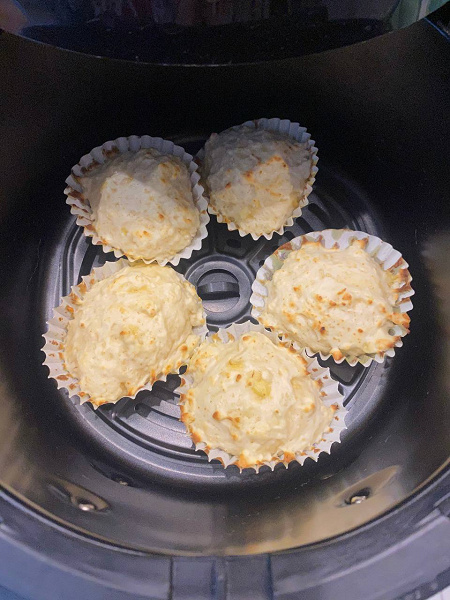 Остальные маффины решили допечь в духовке для ускорения процесса и сравнения. Если бы мы готовили все партии в аэрофритюрнице, потребовалось бы делать еще два подхода после первой партии.