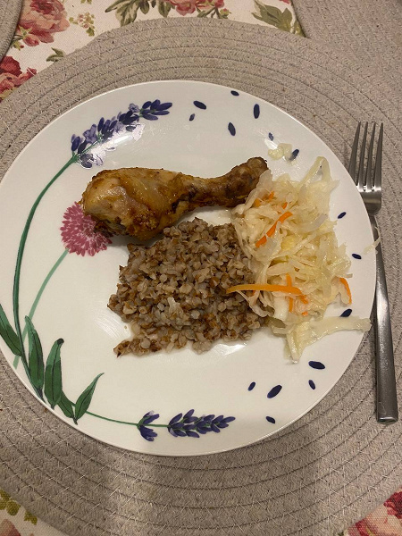 Далее снизили температуру до 180 °C и продлили еще на 20 минут. Через 13 минут корочка активно формировалась, но появлялся риск подгорания, поэтому снова снизили температуру до 170 °C. Оставшиеся 7 минут из продленных 20 прошли, но ножки всё еще не были готовы, поэтому продлили еще на 15 минут. После этого курица приготовилась полностью.