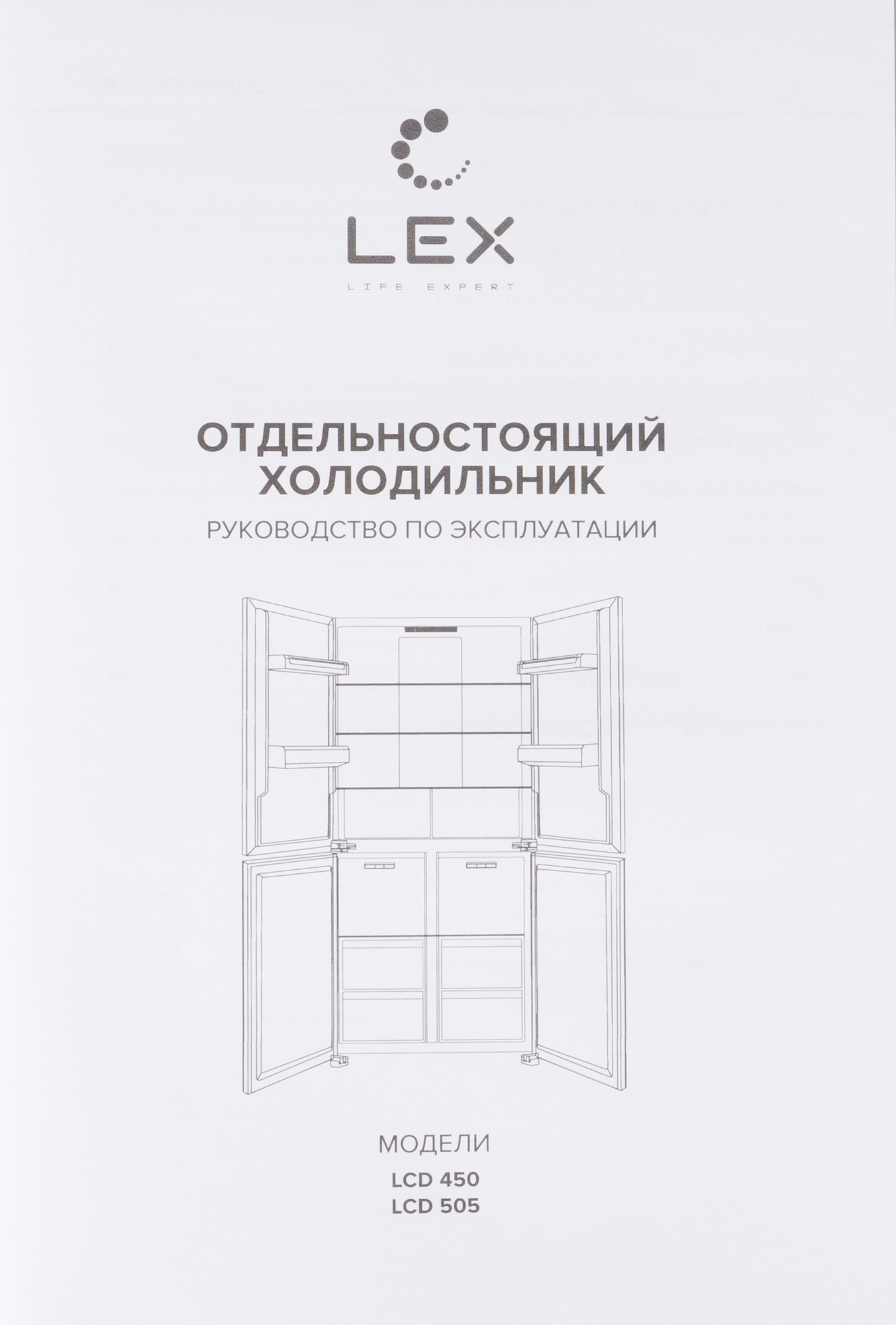 Как это часто бывает у производителей крупной бытовой техники, документ создан сразу для двух линеек холодильников, но моделезависимых отличий у них немного: наш Lex LCD450 отличается от более крупной модели LCD505 только размерами, чуть меньшим энергопотреблением и несущественно более долгим временем поддержания температуры при отключении электроэнергии (12 часов против 10 у LCD505).