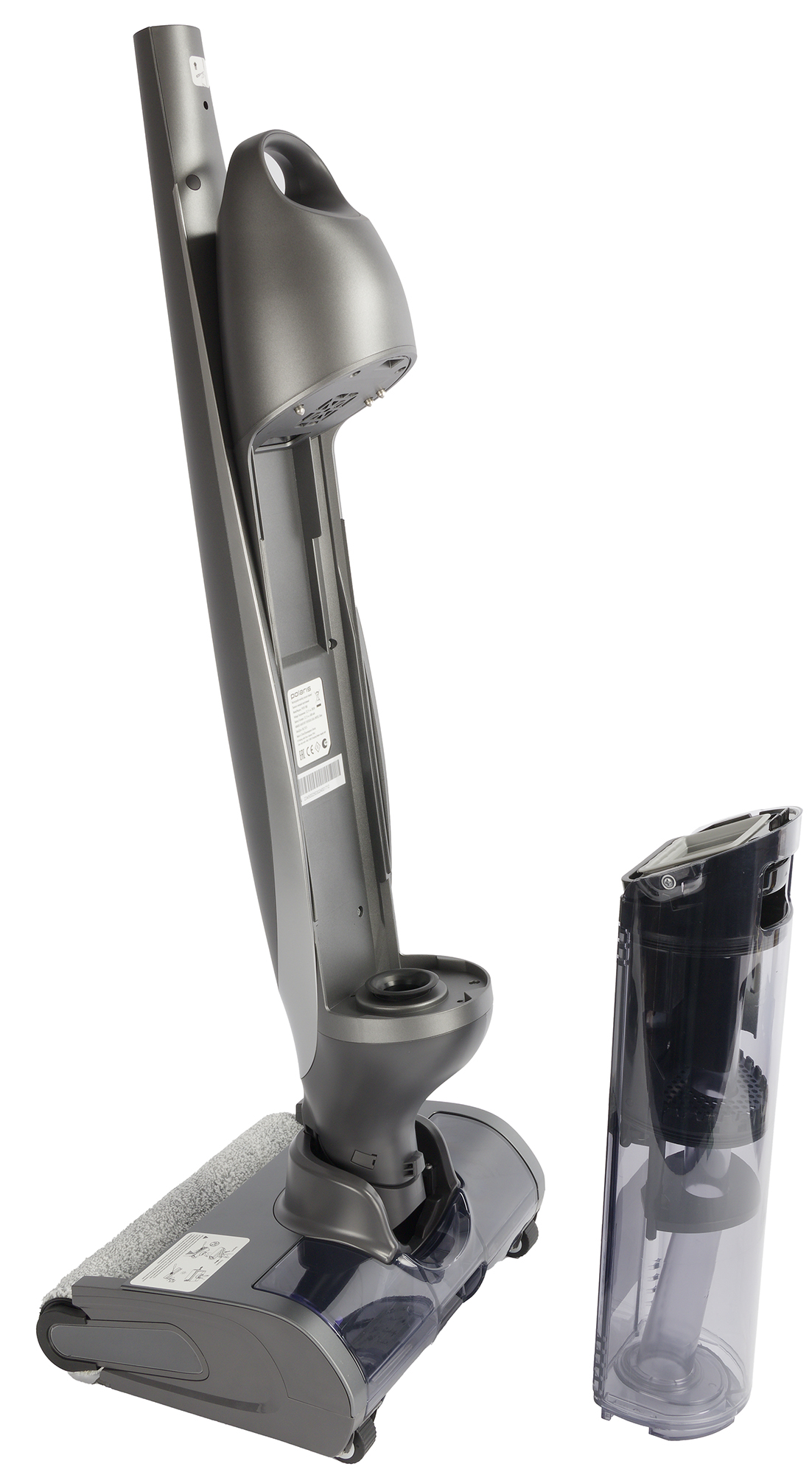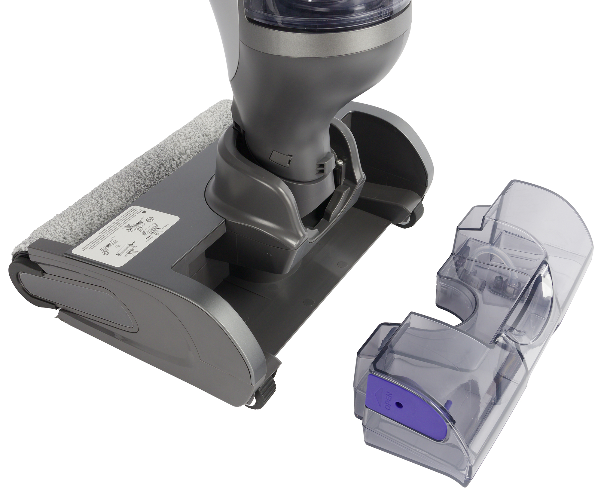 Моторный блок со встроенным аккумулятором и резервуаром для грязной воды объединен с насадкой для мытья пола.