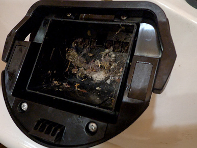 В процессе самоочистки вращающаяся щетка может выбрасывать на пол перед базой фрагменты мусора и оставлять брызги воды. На наш взгляд, конструкторы устройства напрасно отказались от защитной крышки ротора: она могла бы помочь поддерживать чистоту вокруг станции.